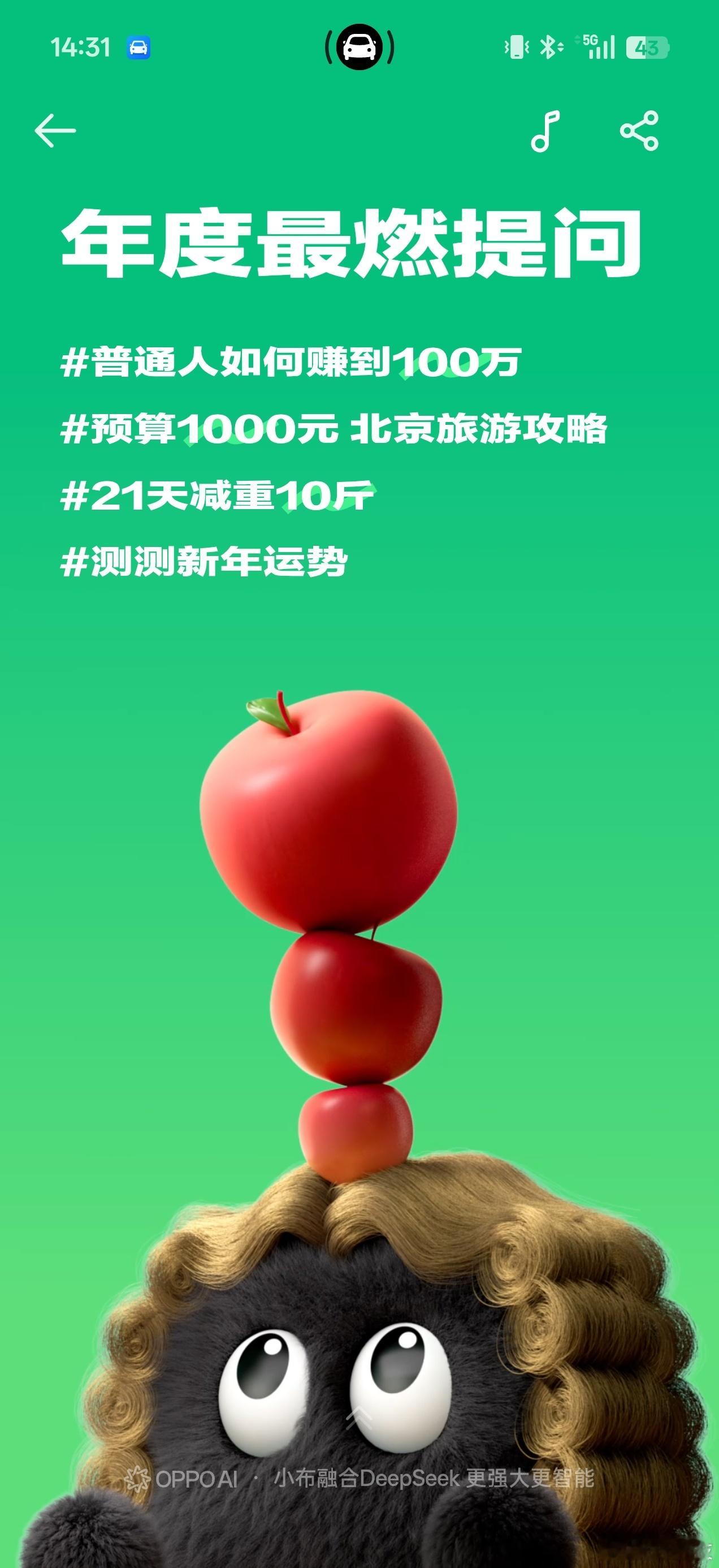 还是Color OS16会整活,不仅有小布跨年倒计时,还有小布年度报告,我也是没想到大家问的最多的竟然是普通人如何赚到100万ColorOS