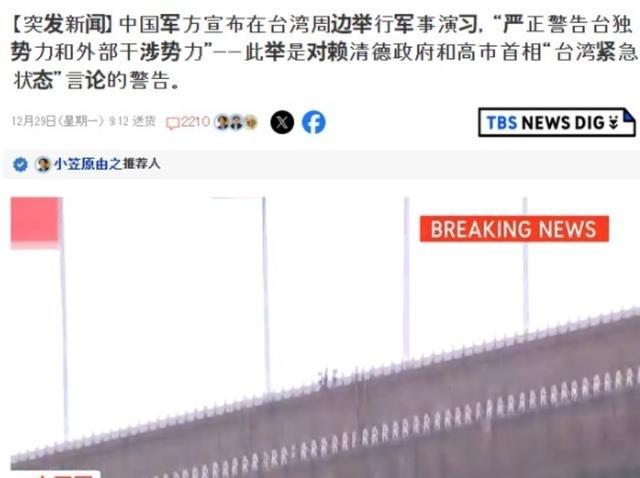 果不其然,大陆举行围台军演后,日本那边很快就坐不住了。日本TBS电视台报道,中国军方启动在台湾地区周边海空域的军事演习,明确指出这是对“台独”分裂势力和外部干涉势力的严正警告。报道还提到,这跟赖清德当局以及高市早苗首相关于“台湾紧急状态”的表态直接相关。 事情得从12月下旬说起。日本自民党那边动作频频,从21日开始,萩生田光一作为干事长代行带头,带着一批议员和地方人士去台湾地区窜访。紧接着,铃木馨祐、长岛昭久等前阁僚也跟上,年末到年初这段时间,总共有近30名国会议员陆续到访,规模是近年来少见的。他们跟赖清德当局见面,谈防务合作、能源供应、产业链联动这些话题,还公开强调台湾地区对日本的重要性。日媒自己都说,这已经超出一般民间交流的范畴,带有明显“官方”色彩。 这种密集访问,踩在了中日关系敏感点上。中国外交部12月22日就表态,指出日本议员行为违背一个中国原则,已向日方提出严正交涉。国台办也明确反对任何形式的外部势力干预台湾问题。 日本议员团刚走没几天,12月29日,解放军东部战区就宣布启动“正义使命-2025”演习。陆海空和火箭军部队参与,在台湾海峡以及台湾地区北部、西南、东南、以东海空域展开。重点练海空警巡、综合制权争夺、港口封控、立体慑阻这些科目。舰机多方向抵近,诸军种联合行动,30日还在指定海域进行实弹射击。东部战区发言人强调,这是检验部队联合作战能力,同时对“台独”和外部干涉发出严重警告,是维护国家主权和统一的正当行动。 日媒报道里提到,这次演习时机选得特别准,就在日本议员大规模访问后启动,信号很明确。日本那边自然感觉到压力,TBS说这带有强烈指向性。实际上,日本西南诸岛的军事部署、能源进口依赖台湾海峡这些现实问题,都让日本在台海事务上没多少底气。经济命脉卡在海上通道上,一旦有事,冲击不小。 高市早苗上台后,日本对台湾地区的态度越来越明目张胆,但台湾问题是中国的核心利益,外部势力插手只会适得其反。中国立场一直清楚,台湾归属有历史法理依据,《开罗宣言》《波茨坦公告》早就定调,日本没资格拿旧金山和约说事。 这次军演就是亮明底线,行动快、力度足。日本继续在错误方向加码,只会让自己更被动。地区稳定需要大家守规矩,别总想着借题发挥。说白了,台海和平靠的是一个中国原则,不是外部势力搅局。希望日本好好掂量,别再干这种搬石头砸脚的事。