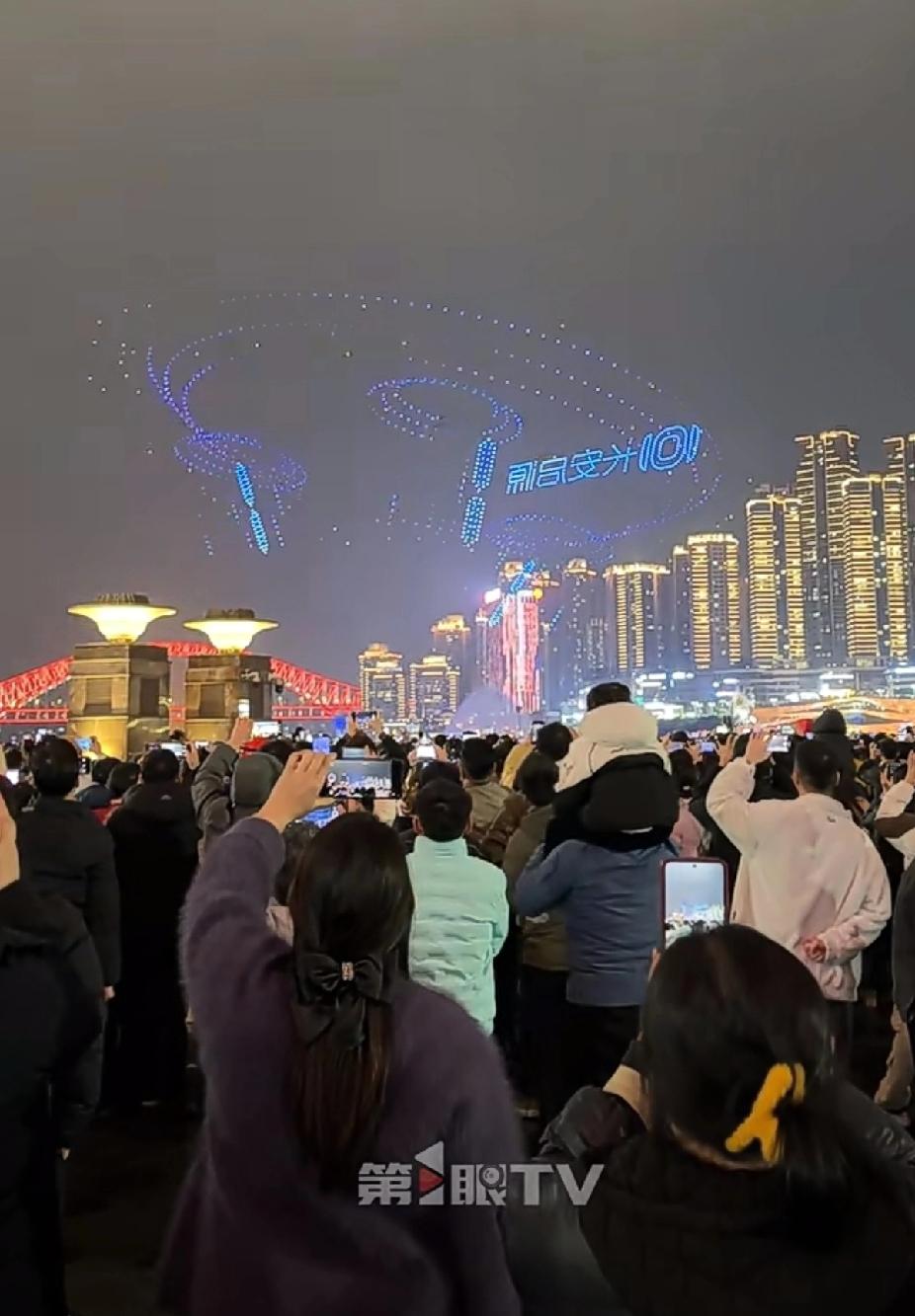 你可以看不上跨年晚会的那些明星 也可以不相信各大主播的忽悠, 但你一定要相信每年跨年,重庆的 跨年氛围感! 就说今年,重庆不仅在两江四岸上演水陆空大秀,零点钟声还在解放碑的夜空敲响! 而且还手首次引入了全国首个江面实景常态化大型光影水幕秀,更与无人机灯光秀形成了水天联动的感觉! 据说现场无人机数量达到了8000架!也太狂了吧!得8000个人在附近操作吧?居然也不挤! 难怪解放碑当初都是人!不管老少都会去,话说今年个别省份都取消了线下跨年活动,重庆居然没取消! 不过就他这波跨年仪式感来说,确实不用取消啊,也让大家挺服气的是不是?