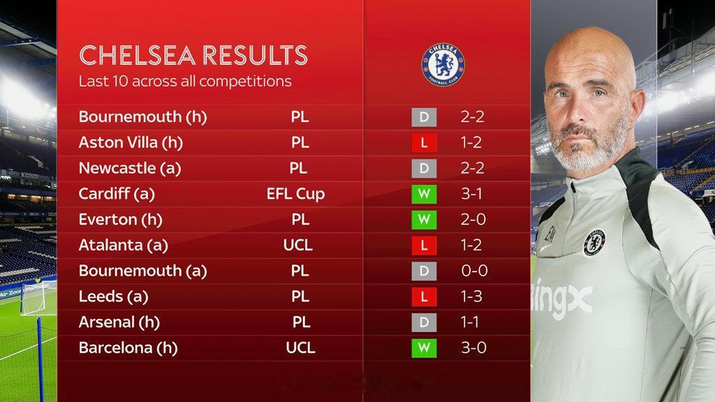 【马雷斯卡面临下课】天空体育消息,切尔西主帅马雷斯卡,面临下课的压力已经大幅增加,蓝军最近7联赛只赢了1场。马雷斯卡需要在一月份火速改善球队的战绩,否则失去工作将会无可避免。
