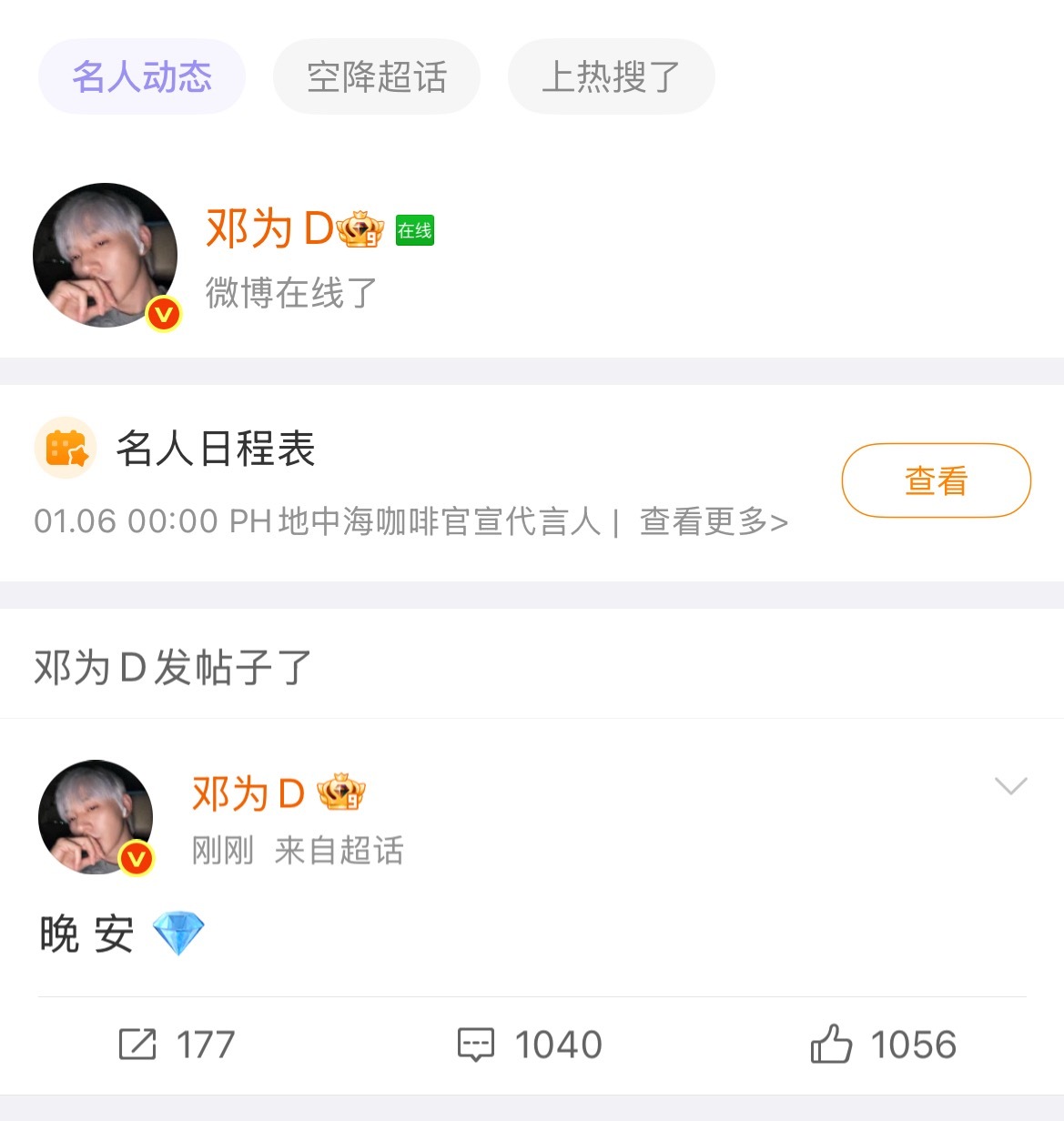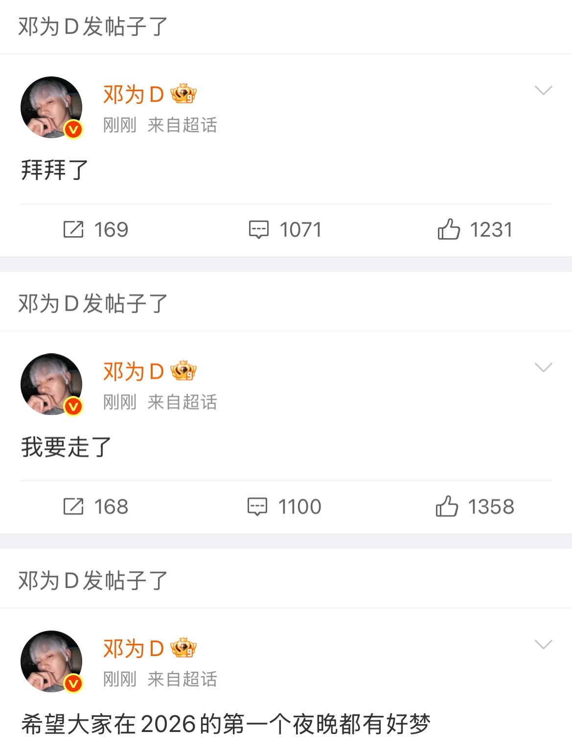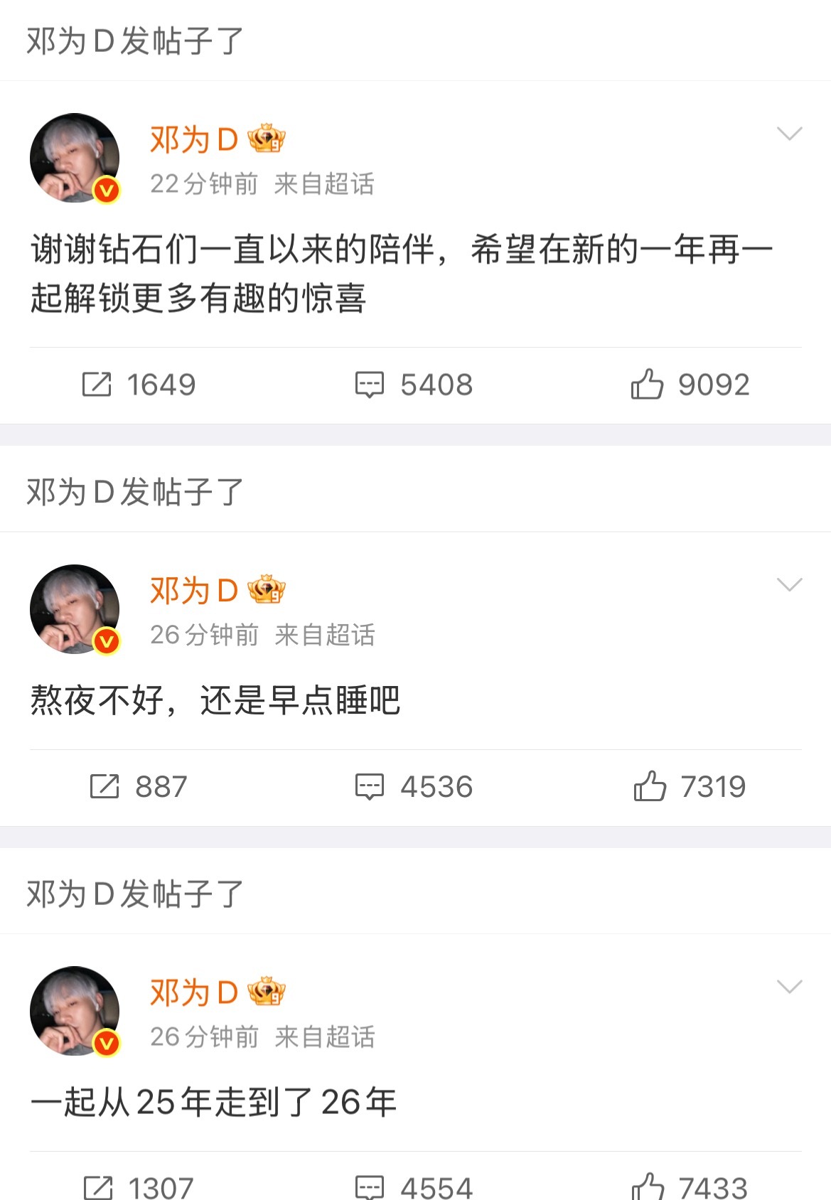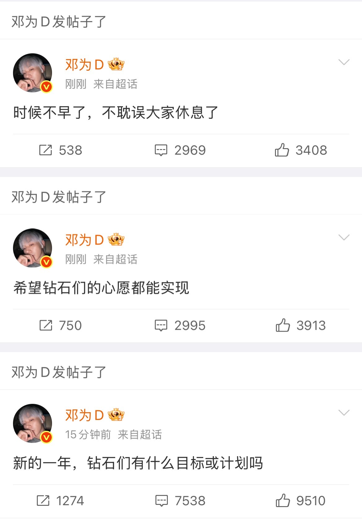 邓为 空降超话 发了好多条啊 ……元旦快乐