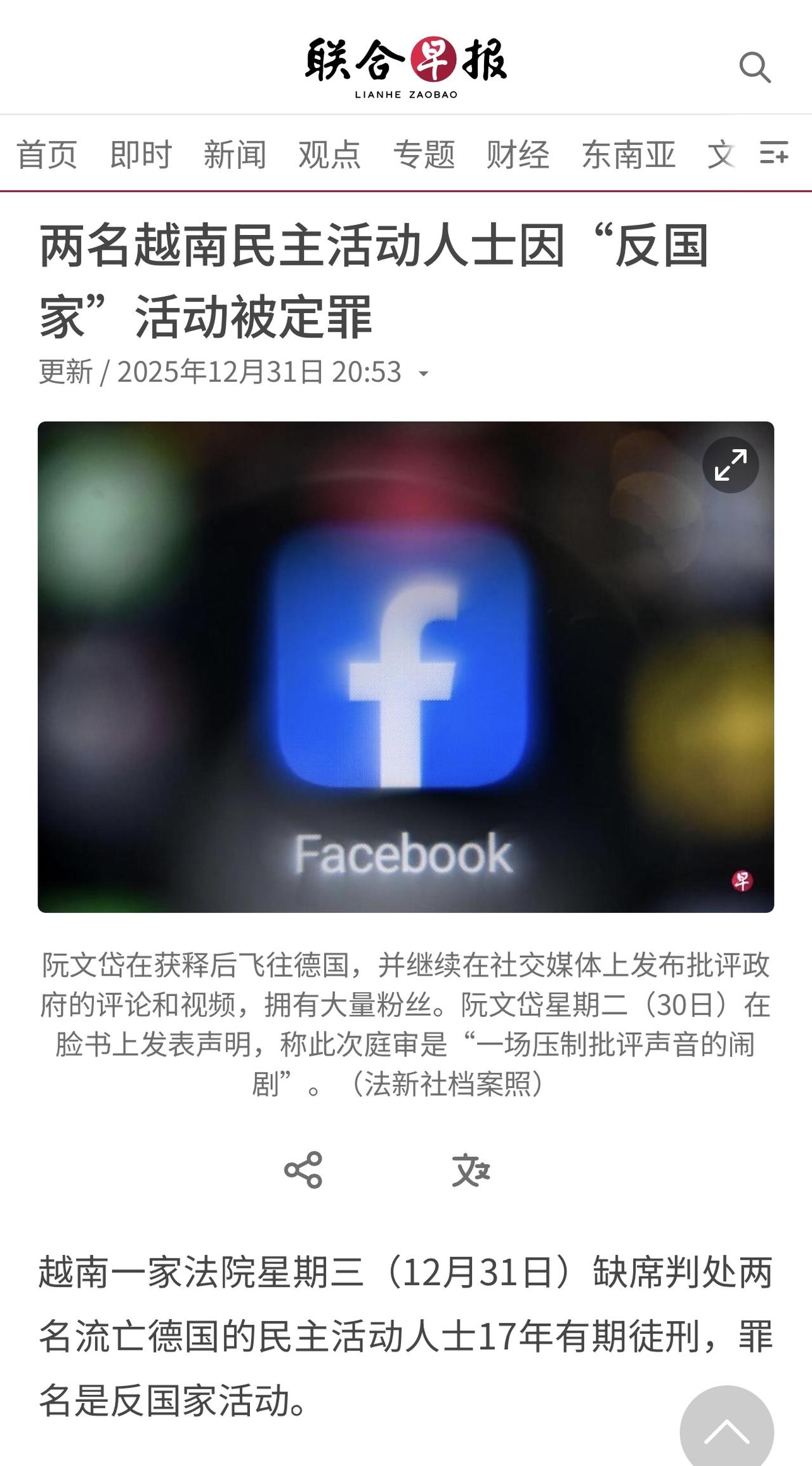 据报道,阮文岱和黎忠科被控“制作、储存、散发或传播旨在反对越南社会主义共和国的信息、文件或物品”。 阮文岱是一名律师和活动人士,长期以来公开批评越南政府,并创立“民主兄弟会”,该网络致力于推动多党民主。他曾因类似罪名被判入狱四年,获释后飞往德国,并继续在社交媒体上发布批评政府的评论和视频。 黎忠科是一名记者,目前也居住在德国。据越南官方媒体报道,他曾利用自己的网站发表文章,“攻击党政领导人,歪曲越南的言论自由和媒体自由状况,并在柏林组织反越抗议活动”。