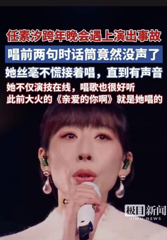 东方卫视跨年翻车!任素汐话筒失灵,清唱救场封神:这才是内娱真演员的专业素养 跨年晚会名场面年年有,2025年东方卫视的突发状况直接冲上热搜!2025年12月31日晚,万众瞩目的跨年直播现场,实力派艺人任素汐刚登场开唱,话筒突然失灵没了声音,全场瞬间陷入紧张。 要知道这可是全国直播的顶级舞台,亿万观众实时在线观看,换成任何艺人都可能慌神乱节奏,甚至中断表演。但任素汐的反应堪称教科书级别——她全程面色从容,没有一丝慌乱,既没打乱歌曲节奏,也没停下表演脚步,反而立刻切换清唱模式,用扎实的唱功撑住全场。清澈又有力量的歌声透过现场音响传递出来,感染力丝毫不减,直到话筒恢复声音,她又无缝衔接继续演唱,全程零失误、零卡顿,专业度拉满。 这场“临场救场”直接引爆网友热议!大家纷纷刷屏点赞:“任素汐也太稳了吧!话筒没声还能这么淡定,这定力绝了”“清唱都这么好听,不愧是实力派,业务能力没话说”“对比之下工作人员太掉链子了,这么重要的晚会居然出设备问题”。更多网友感慨:“内娱需要的就是这种真本事,不是靠流量堆出来的,关键时刻能扛事才叫艺人”。 其实任素汐一直以扎实的演技和唱功圈粉,从影视剧中的精彩表现到舞台上的稳定输出,她始终用实力说话。这次话筒失灵的突发状况,不仅没让她翻车,反而成了“圈粉名场面”,让更多人看到了她作为艺人的专业素养和临场应变能力——真正的实力,从来都经得起意外的考验。 这场跨年晚会的小插曲,终究成了任素汐的“高光时刻”。你被任素汐的清唱救场圈粉了吗?欢迎在评论区聊聊你的看法! 任素汐清唱救场 东方卫视跨年突发状况 内娱实力派 艺人专业素养