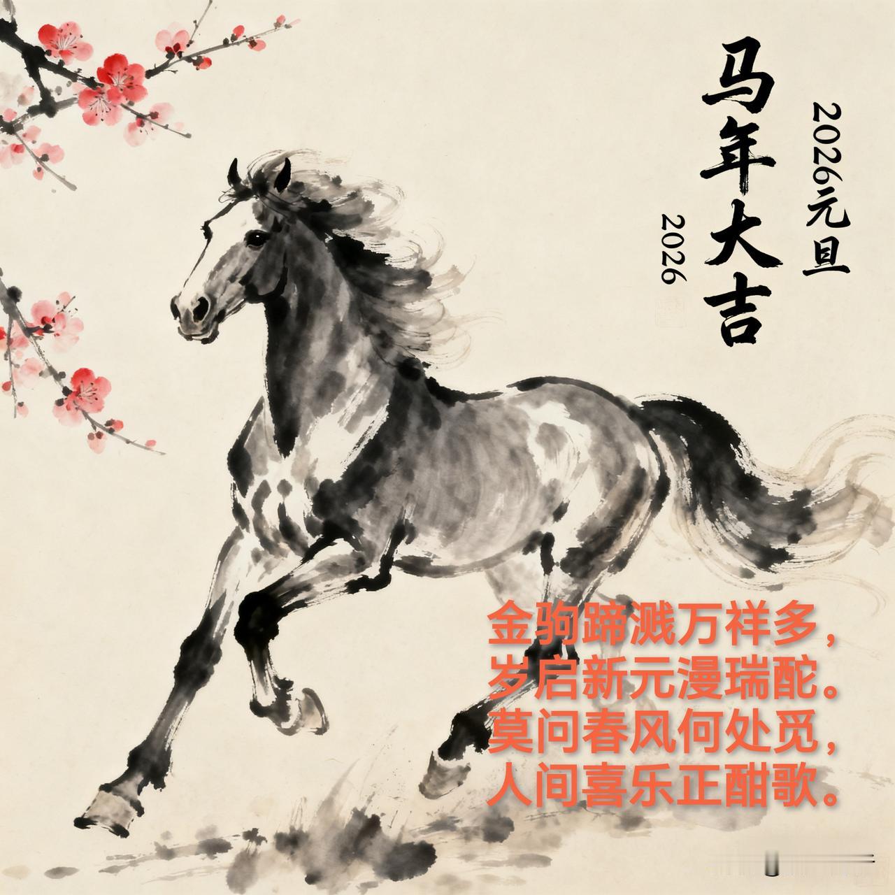 马年元旦 [文|狐山诗行] 你喜欢哪些跨年古诗词 金驹蹄溅万祥多,岁启新元漫瑞酡。 莫问春风何处觅,人间喜乐正酣歌。 (平水韵 押五歌韵) 2026.元旦.长沙 文学创作大会 长沙诗词对联交流圈