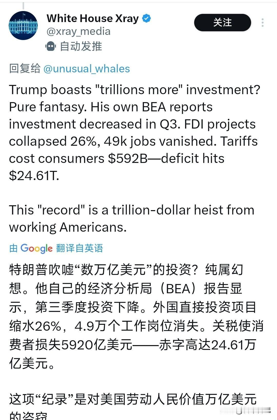 特朗普又放“数据卫星”?这波操作你信几分? 话说回来,2025年第一天刚过,特朗普就在社交媒体上扔了颗“炸弹”。他说美国吸引的外资创下了世界纪录,比中国多出“数万亿美元”,全靠他当年的关税政策。这话一出,不少人直挠头——这数字哪来的?谁统计的?翻遍权威报告也没见影儿啊。你总不能张嘴就来,说多几万亿就多几万亿吧?毕竟这种量级的数据,连联合国贸发会议(UNCTAD)这种机构都没发布过类似说法。他倒是说得痛快,可背后没个数据支撑,听着就像街头吹牛。 他那套逻辑也挺有意思:产品在美国生产,就不用交关税,所以企业蜂拥而至。听着是那么回事,可现实哪有这么简单。当年加征关税的时候,钢铁、铝材、零部件进口成本蹭蹭涨,不少美国中下游企业被压得喘不过气。像通用汽车这种巨头,都曾公开抱怨供应链成本失控。你说工厂“如雨后春笋”?可美国制造业回流的确有,但规模远没到“空前爆发”的程度。建厂要地、要人、要时间,哪是发条推文就能解决的事? 更耐人寻味的是他对“政绩”的执念。这些年他但凡说话,数字总是特别大,差距总是特别悬殊。动不动就是“史上最强”“前所未有”,仿佛全世界都在等他一声令下才开始发展。但细究起来,这些数字常常经不起推敲。比如他曾说边境犯罪率“飙升至百万分之几”,结果被事实打脸;又比如宣称某次集会人数破纪录,照片却清清楚楚打脸。这次又是“数万亿美元”的碾压式领先,连具体年份都没提,到底是哪一年的数据?2018?2019?还是他自己脑子里的“理想年”? 其实外资流入这事儿真没那么简单。中国这几年在新能源、半导体、高端制造领域持续发力,特斯拉上海超级工厂落地、巴斯夫在湛江砸下百亿美元扩产,这些都是实打实的外资动向。而美国虽然通过《芯片与科学法案》吸引了一些投资,但整体外资流入并不稳定。2023年数据显示,全球跨境投资仍在恢复中,美国排前列没错,但和中国的差距远没到“数万亿”这个量级——毕竟全球FDI总量也就1.3万亿美元出头,他这数字一放,倒显得全世界钱都堆美国去了。 而且你细细琢磨他的话术,总带着一种“都是因为我”的傲慢。好像经济运转全系于一人之身,政策一出,万企来投。可经济是复杂系统,哪能全归功于某一条政策?美联储利率、劳动力市场、基础设施、营商环境,哪项不比单一关税影响更大?他把功劳全揽身上,问题甩给别人,这套玩法玩多了,大家也就看明白了。 有意思的是,每逢重大时间节点,他总爱出来“晒成绩单”。新年第一天发这种帖,图的不就是个舆论热度?数字真假倒在其次,关键是让支持者听着痛快,觉得“我们曾经很强,还会再强”。这种情绪营销,用多了就成套路了。对吧?你听多了,也就麻木了。