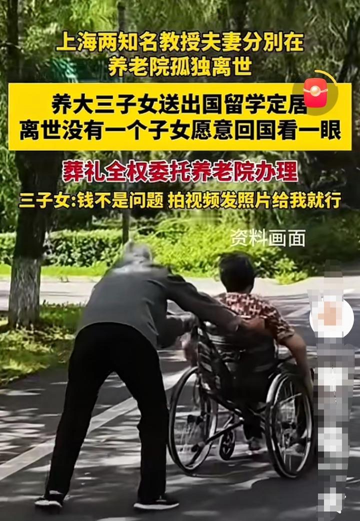 两位老人膝下有三个儿女,这些年为了供儿女读书,二老可以说煞费苦心,学习上什么要求都会满足她们,给儿女们提供良好的学习环境!毕竟二老都是教授,学术指导与经济资助都能帮到儿女! 三个儿女也都非常的争气,学习成绩从来不让二老失望,最后都出国了!然而自从儿女们出国以后,就再也没有回来看望过二老,她们陆续在国外定居,结婚生子,平时只能跟二老打视频电话! 久而久之,子女们对二老的感情越来越淡,有时候几个月都没有一个电话!甚至二老离世,三个儿女没有一个人回国看老人一眼! 有时候真的想不明白,学历越高,应该学识与德行,包括孝道就会越高才对!身体发肤,受之父母,父母用尽一生给了儿女灿烂璀璨的人生,最后她们却如此的冷落父母,让人愤慨意难平!