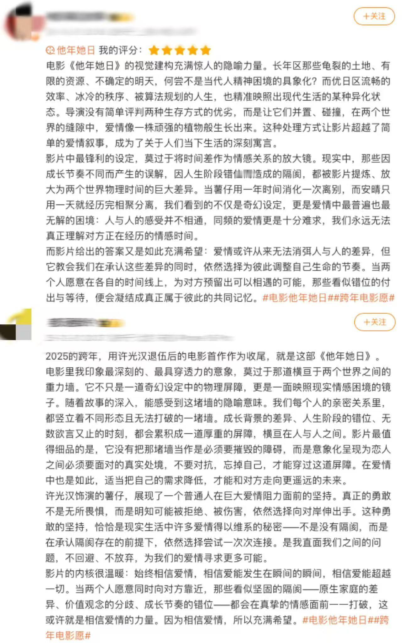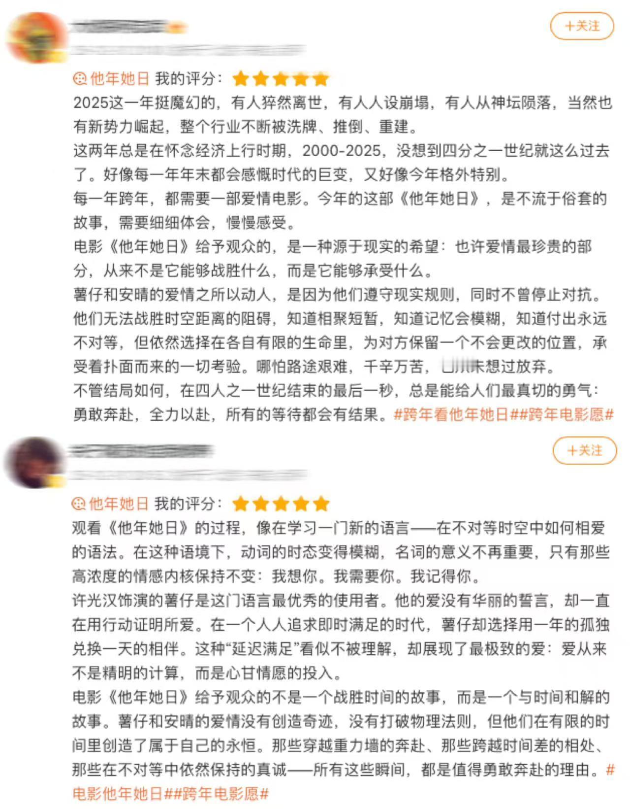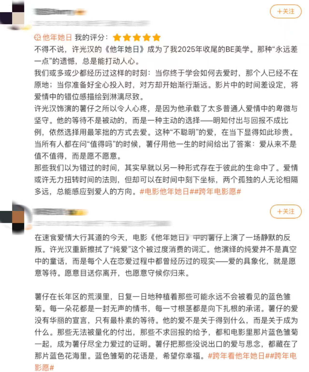 电影他年她日 不仅是一个爱情故事,它还是一场关于“等待”的信仰。在一切都追求即时的时代,竟还有人愿意把一生,活成一句安静的诺言。许光汉饰演的薯仔,像极了在爱里笨拙却执拗的我们:不擅表达,却用最漫长的岁月,默默证明。那片蓝色雏菊田,是电影最美的无声诗。所有难以言说的思念,都被埋进土壤,静静生长为一片柔软的坚定。影片不贩卖甜蜜幻梦,而是坦诚展现爱情的艰难与距离。却也正因如此,那份跨越时空的“勇敢”,才显得格外珍贵有力。如果2026年只选一部电影开启,我会毫不犹豫选择《他年她日》。它让你相信:就算时间流速不同、世界频率不一,也总有人愿意用一生的刻度,去等待与你交汇的一瞬。电影他年她日口碑跨年电影愿
