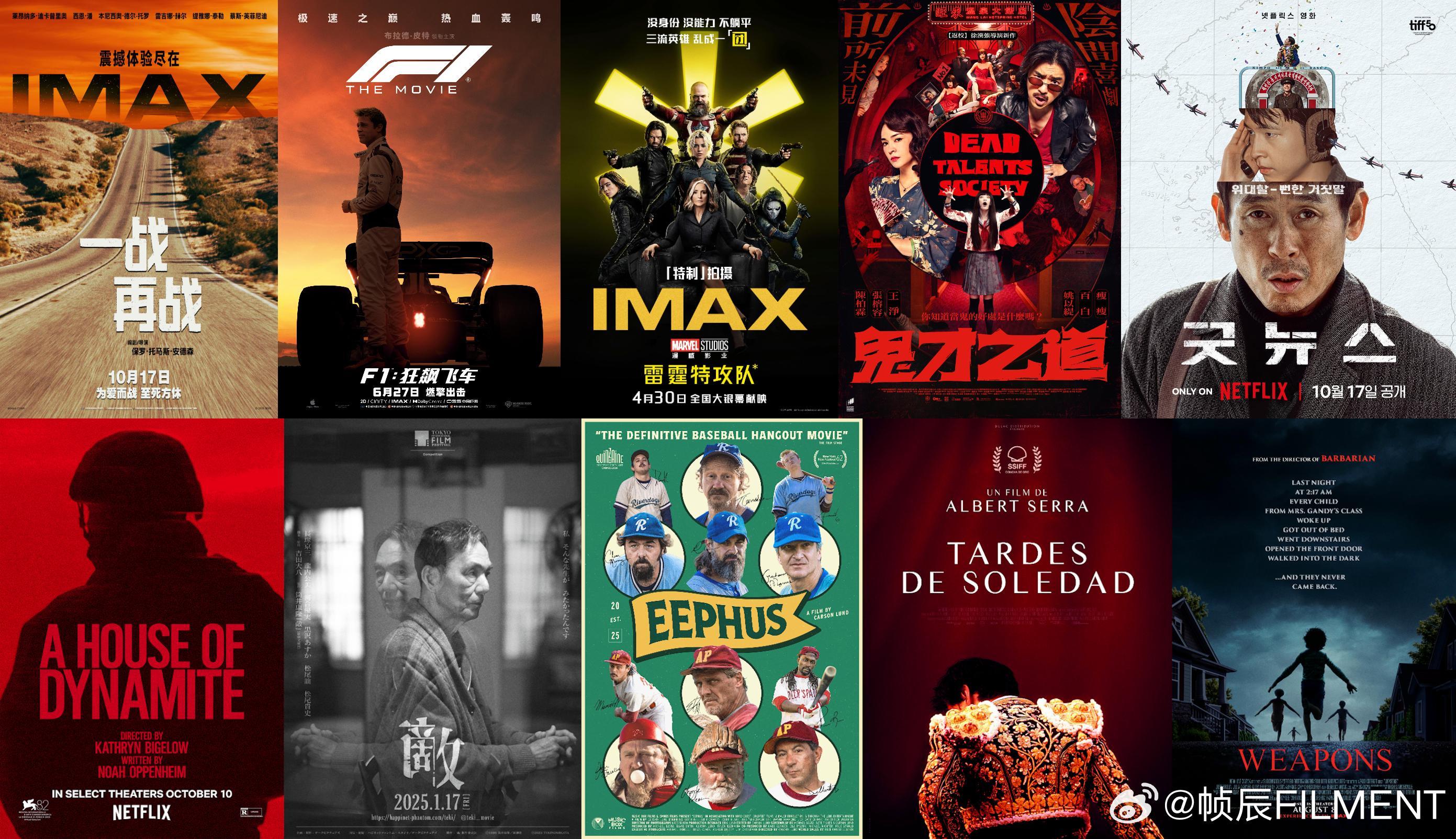 我的2025年度十佳电影:保罗·托马斯·安德森 《一战再战》(One Battle After Another)约瑟夫·科辛斯基 《F1:狂飙飞车》(F1: The Movie)杰克·施莱尔 《雷霆特攻队*》(Thunderbolts*)徐汉强 《鬼才之道》卞成贤 《凶降喜讯》(굿뉴스)凯瑟琳·毕格罗 《炸药屋》(A House of Dynamite)吉田大八 《敌》(敵)卡森·伦德 《高弧慢球》(Eephus)阿尔伯特·塞拉 《孤寂午后》(Tardes de soledad)扎克·克雷格 《凶器》(Weapons)十佳候补:达伦·阿伦诺夫斯基 《偷天盗日》(Caught Stealing)伊莲娜·卡泰特 / 布鲁诺·福扎尼 《死钻倒影》(Reflet dans un Diamant Mort )马特·沙克曼 《神奇4侠:初露锋芒》(The Fantastic Four: First Steps)伊利亚·奈舒勒 《国家元首》(Heads of State)加雷斯·埃文斯 《毒劫》(Havoc)莱恩·约翰逊 《利刃出鞘3》(Wake Up Dead Man: A Knives Out Mystery)阿里·艾斯特 《爱丁顿》(Eddington)史蒂文·索德伯格 《感应》(Presence)史蒂文·索德伯格 《黑袋行动》(Black Bag)让我失望的电影:埃德加·赖特 《猎杀游戏》(The Running Man)詹姆斯·古恩 《超人》 (Superman)加里斯·爱德华斯《侏罗纪世界:重生》(Jurassic World: Rebirth)
