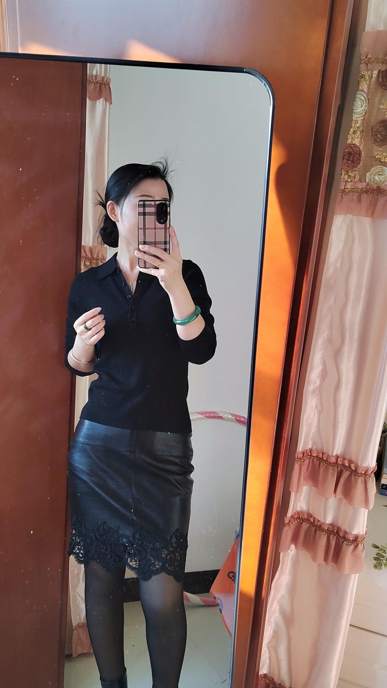 黑色上衣搭配皮裙,尽显优雅气质!👗👠
