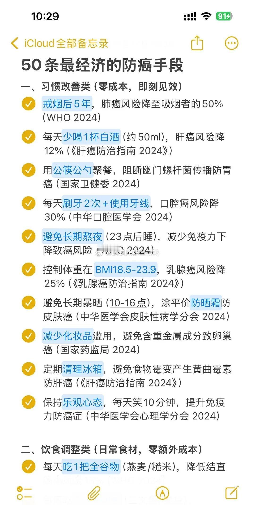 搬→从医学院论文偷来的50个防癌小tips