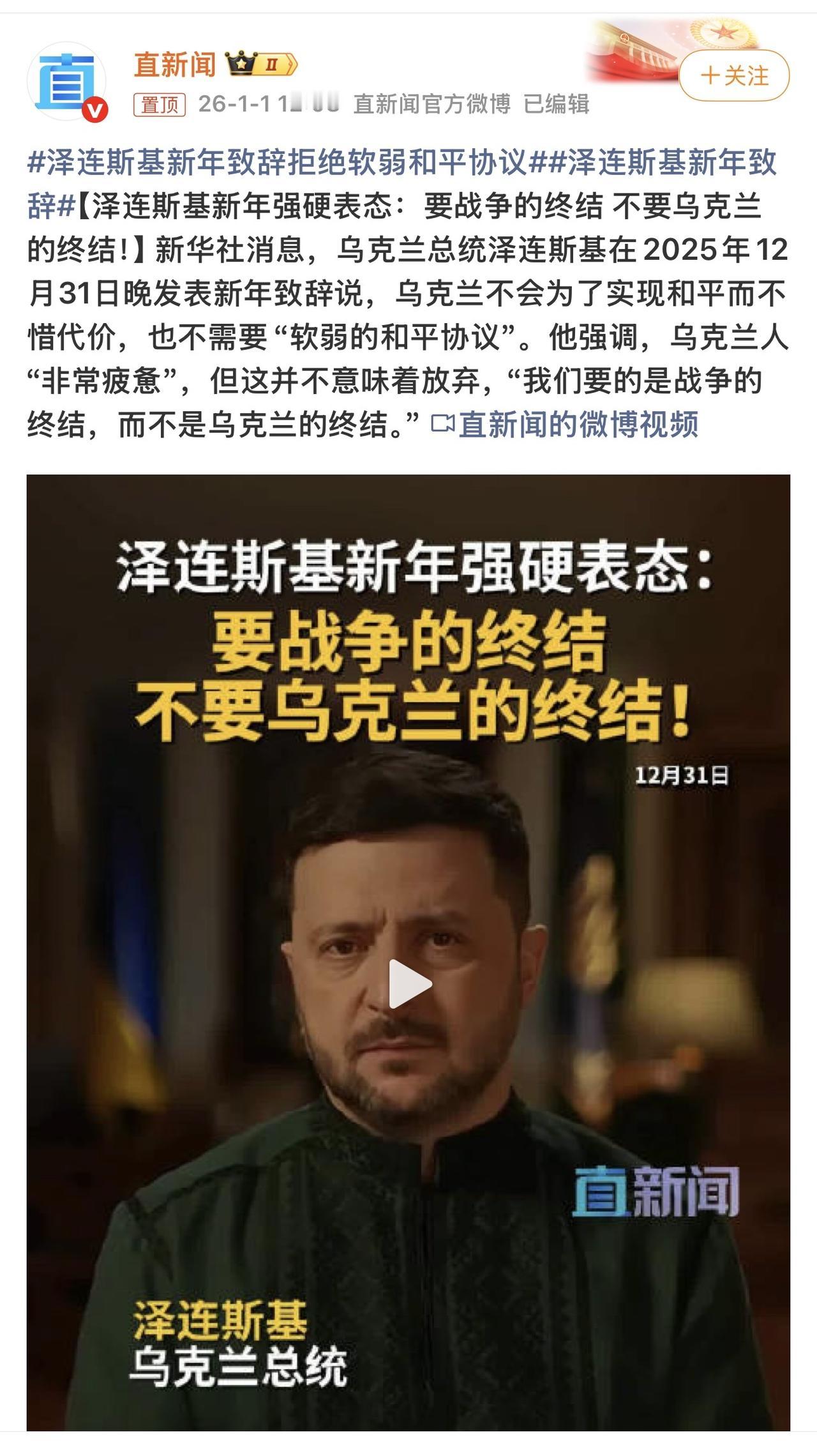 泽连斯基在讲话中拒绝承认俄罗斯对顿巴斯的主权,并表明不会接受“软弱的和平”。
