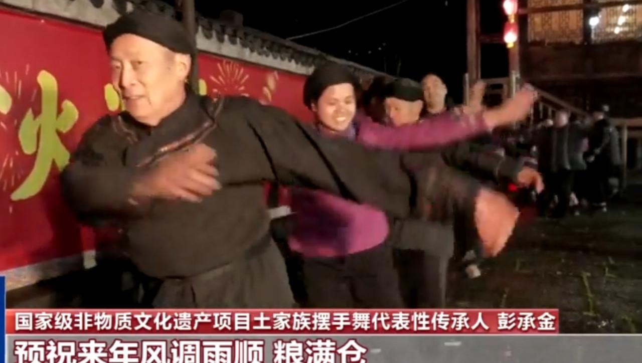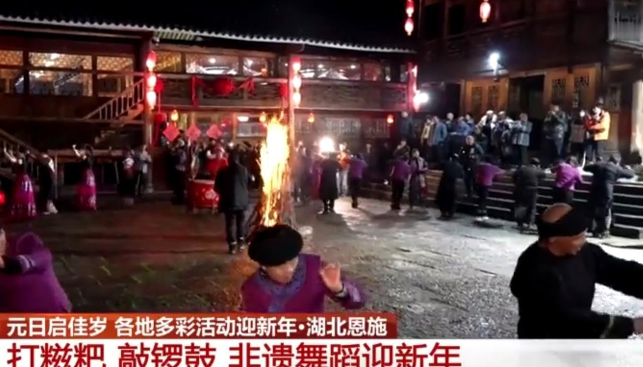 湖北恩施土家新年的非遗盛宴 湖北恩施来凤县舍米湖村的新年夜热闹非凡,村民彭大银介绍着打苞谷、高粱、大米糍粑的年俗,圆润的糍粑裹着团圆期盼。村寨里红灯笼高挂,土家族摆手舞传承人彭承金带领众人跳起国家级非遗摆手舞,铿锵的锣鼓、欢快的舞步,伴着对来年风调雨顺、粮满仓的祈愿,让土家传统年俗在新年焕发出鲜活的生命力。