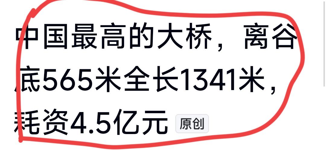 那些人,整天说信宜高州是因为山高地势险恶,建高铁🚅成本高,而导致高铁不可能会经他们境内的! 那他知道什么什么叫祟山峻岭,什么才是地势险恶吗? 这是正在建设中的贵州六盘水大桥,从建桥的桥面到离桥底就有足足500多近600米的高度,如果垵住宅楼的高度来计算,就有近200层楼的高度。 就问你们,这座大桥高吗? 今天看中央新闻台新闻记者,直击新年施工现场的解说,建这座桥需要建6年多的时间,耗资就近4亿多元的人民币。 看了这新闻后,还有人敢说粤西的高州信宜山高地势险恶吗? 这一座桥一建就要建6年时间。 好像广东境内建的任何一条高铁线,任何的一条高速公路,其建设的时间都不需6年吧? 有吗? 资料图片来自网络!