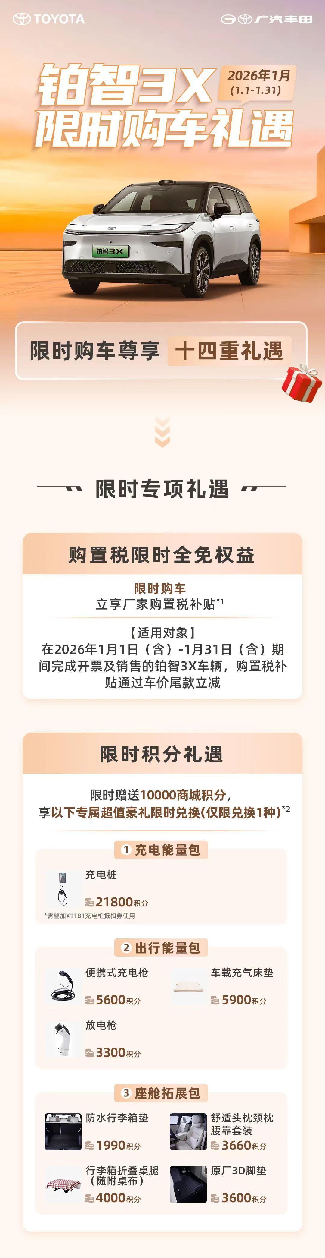铂智3X刚拿下2025合资新能源销冠,70008台的销量直接把10万级纯电SUV的场子给镇住了,转头又甩出2026年1月购置税全免的大招,属实是“卷王本王”了咱就是说,7万多台的销量可不是吹的,能成为10万级纯电市场的主流之选,看来是真把消费者的需求摸透了。现在还直接把购置税给包了,尾款立减不用垫钱,再加上电车自燃赔新车、电池衰减换全新电池、智能泊车事故包维修的“三担责”保障,这波福利直接拉满,生怕咱买车的人有一点后顾之忧是吧?只能说铂智3X这操作,是打算在2026年继续把合资纯电的销冠焊死在自己身上了?我先蹲一个,看看还有哪个选手能接招~铂智3X率先推出26年购置税限时全免2025年铂智3X全年销量70008台