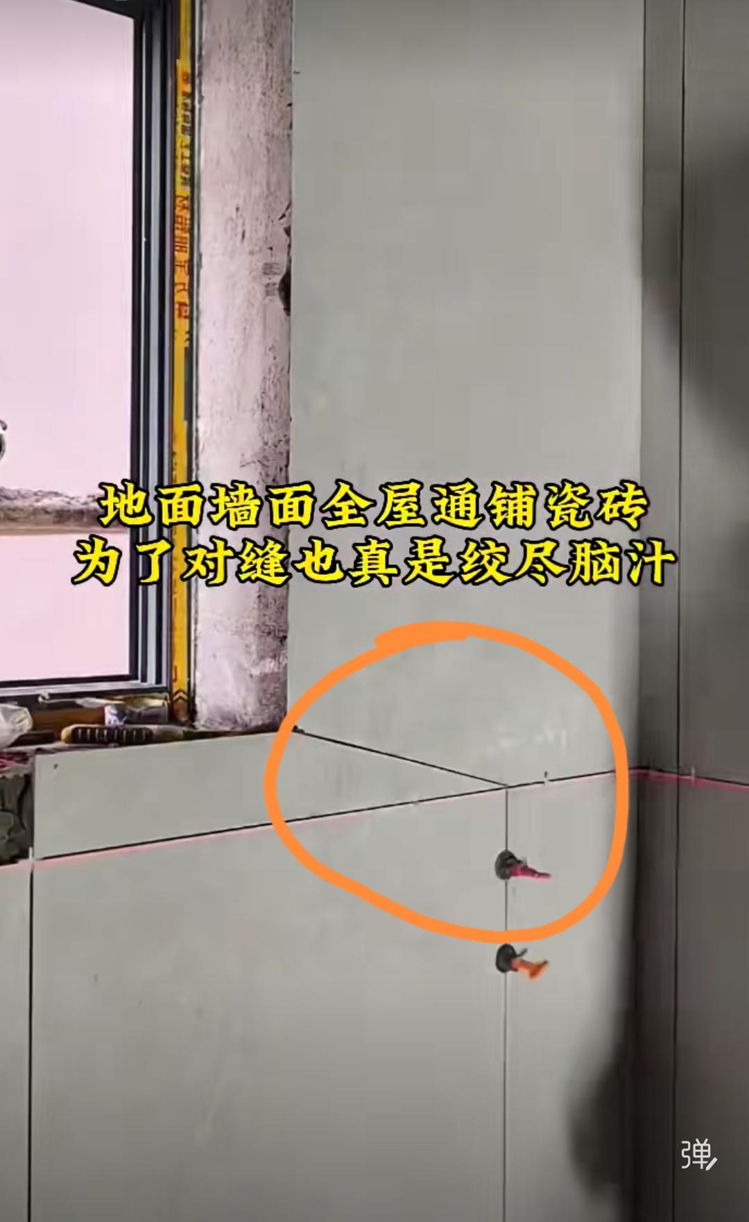 只因业主要求全屋通铺瓷砖,且墙地要对上缝,然而在实际施工中,不可避免地会出现墙地