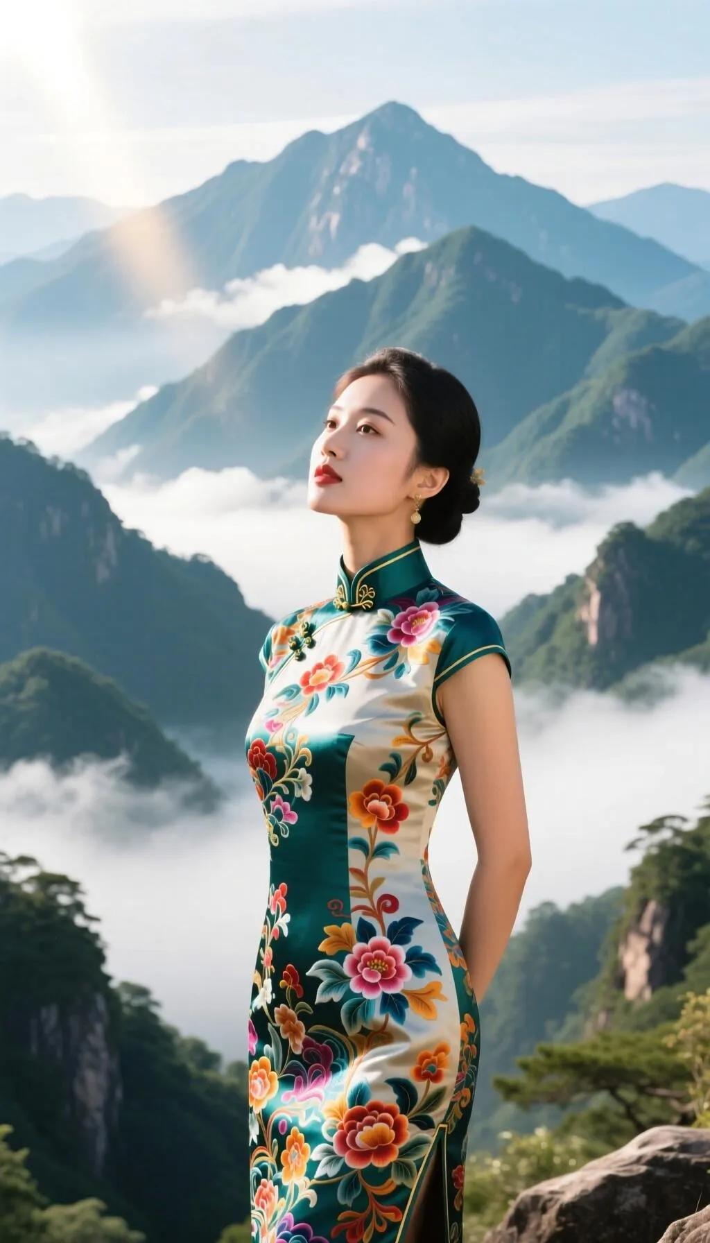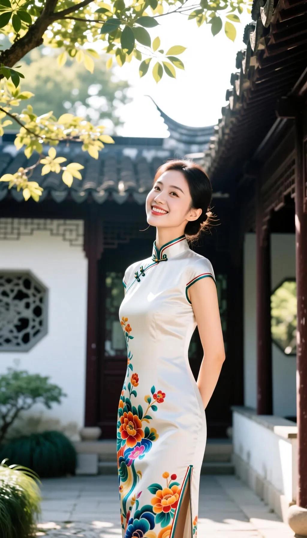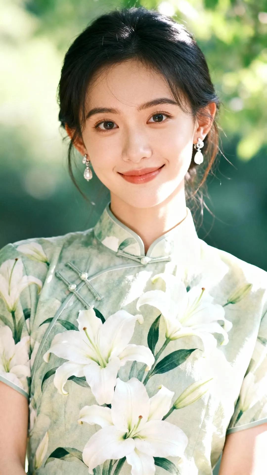 微微一笑百媚生,恰是春风拂柳轻。蓝花旗袍,佳人风韵出水芙蓉,美若天仙面若