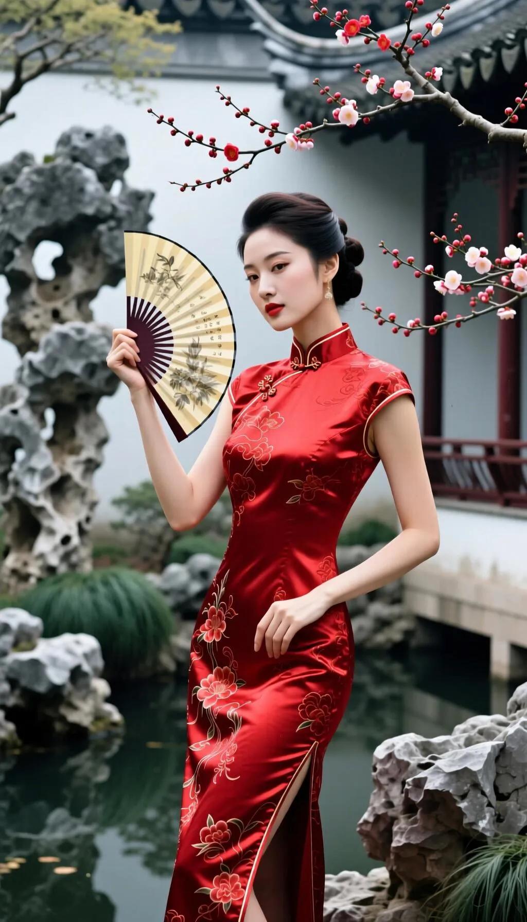 惊艳的古典美女,红唇与黑发相映成趣,古风服饰尽显优雅!