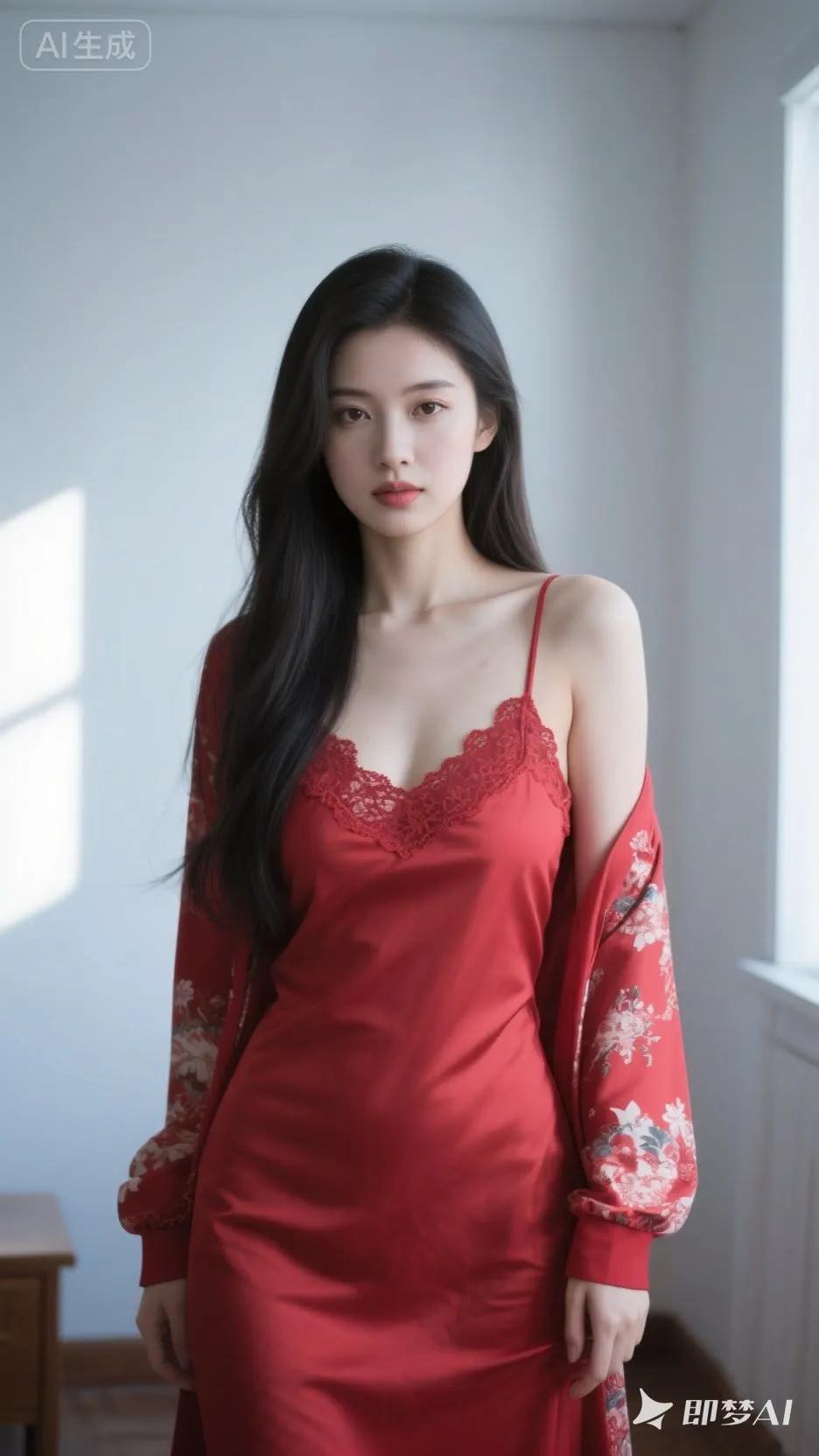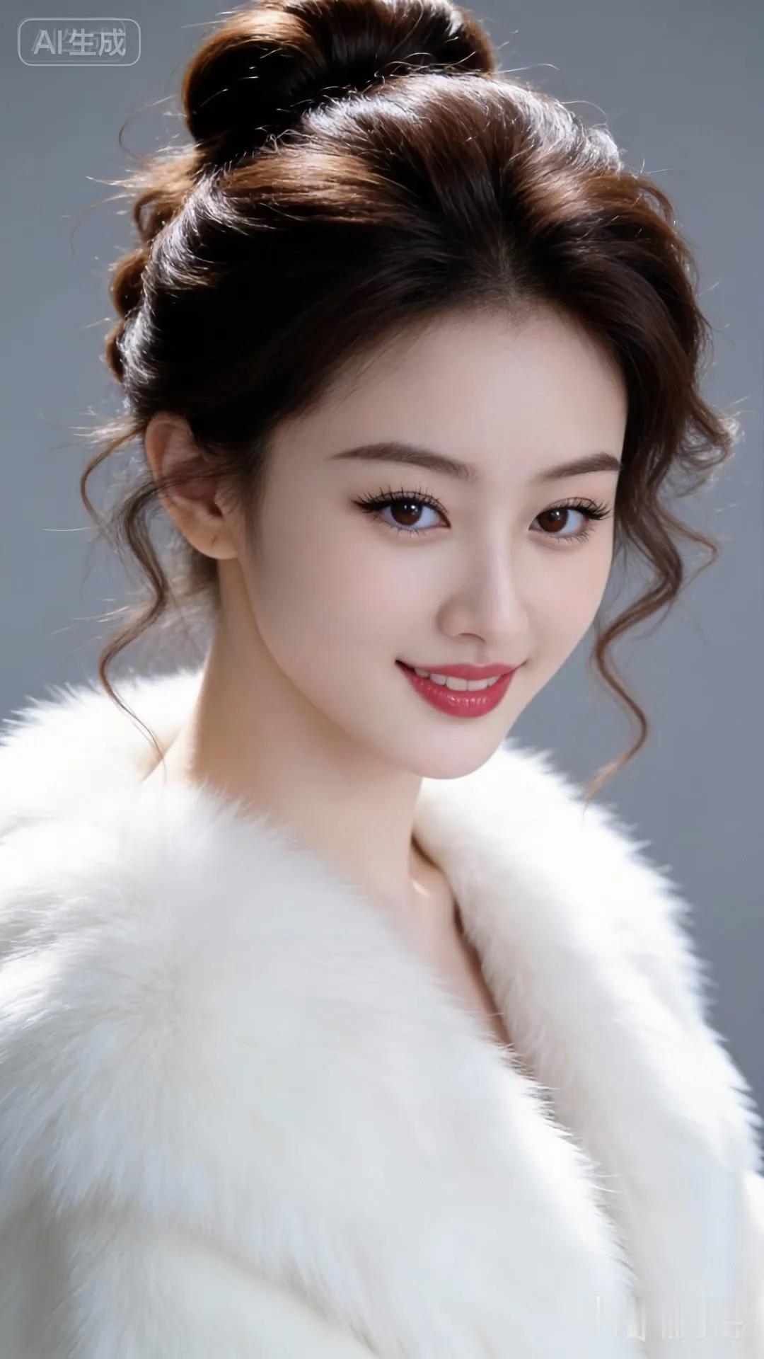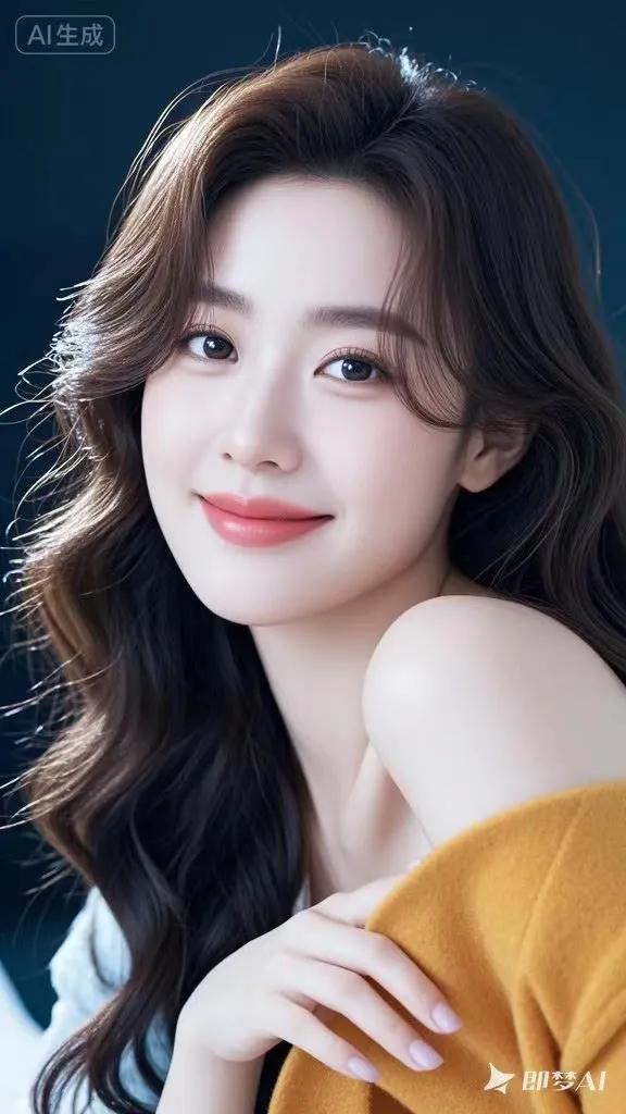 甜美笑容,红唇诱惑,黑发飘逸,气质动人