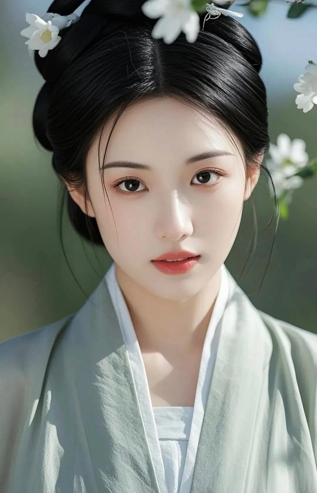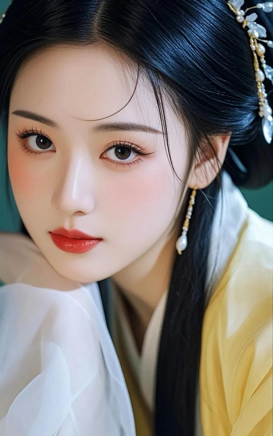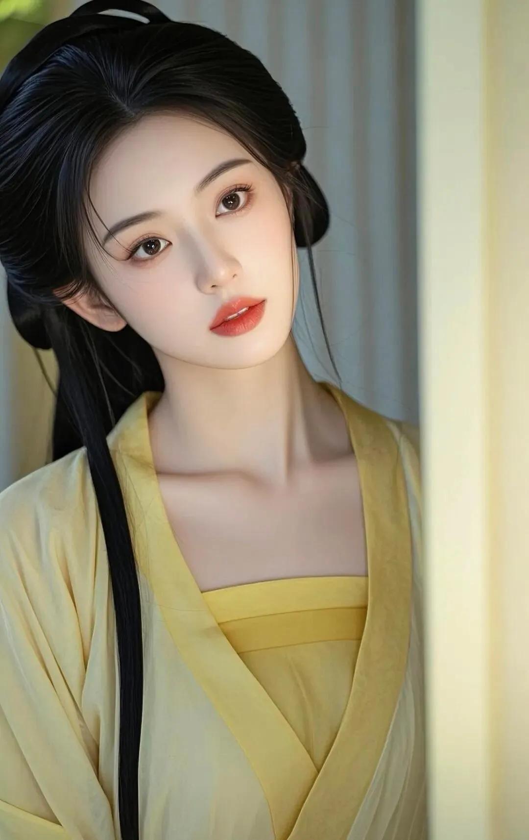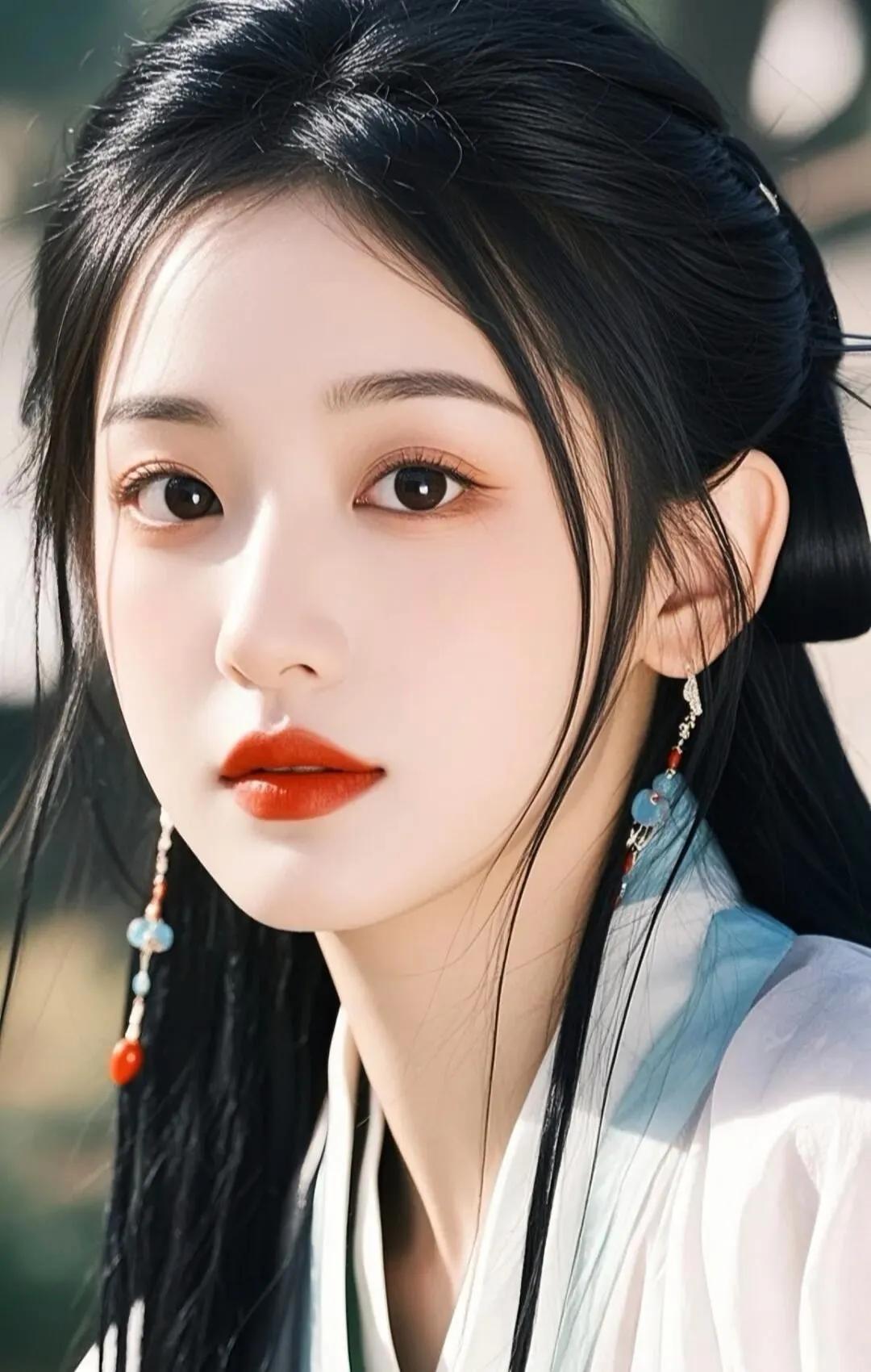 惊艳的古典美女,红唇与黑发相映成趣,古风服饰尽显优雅!