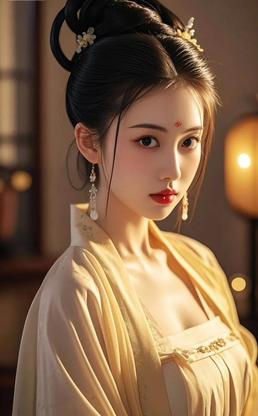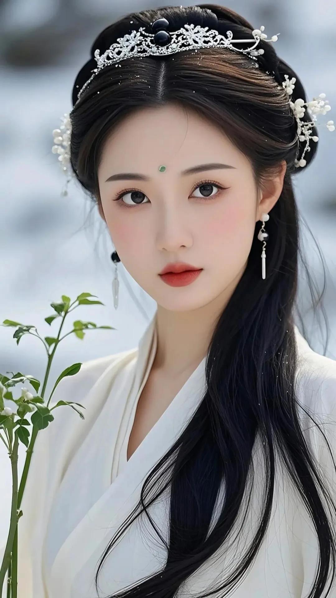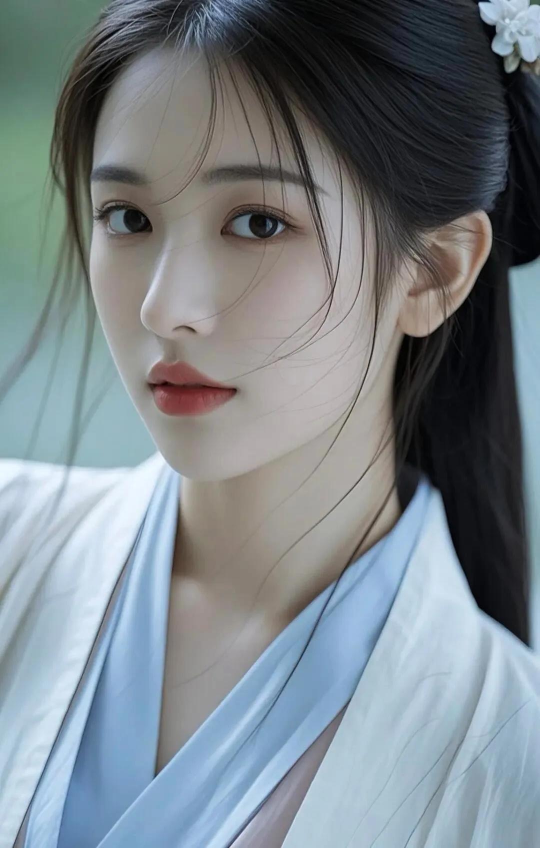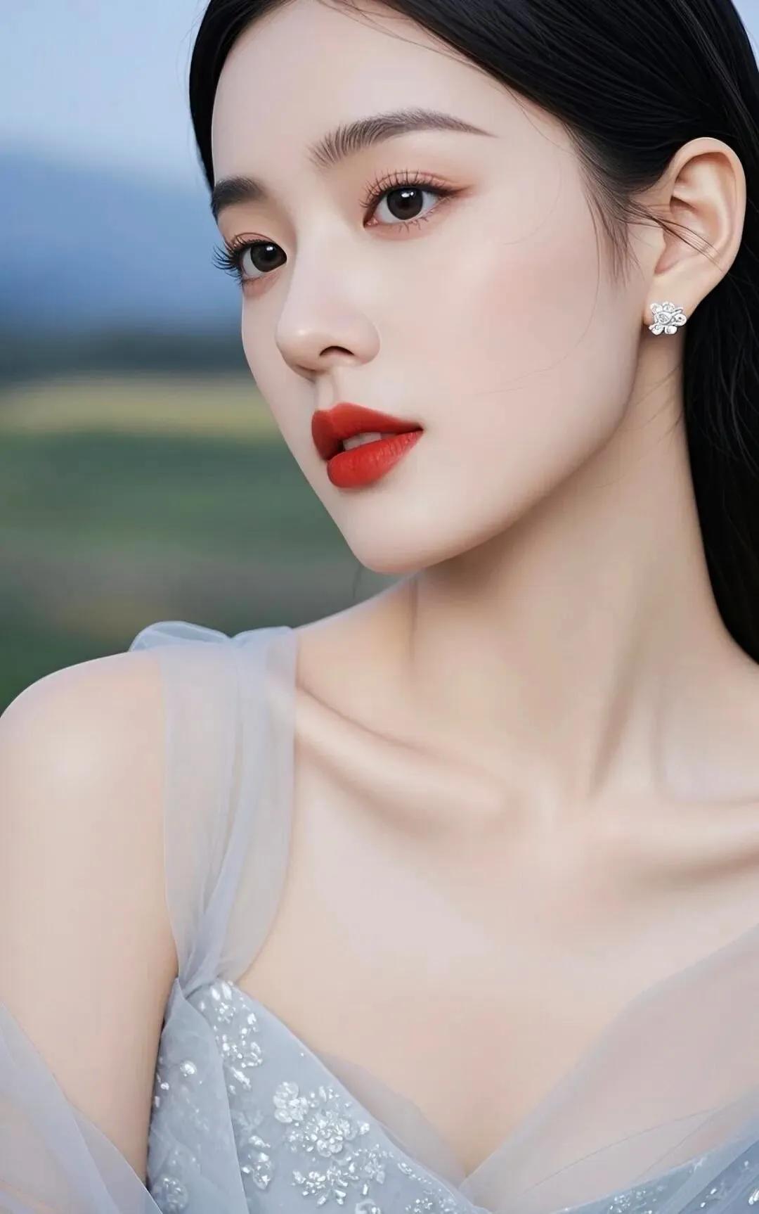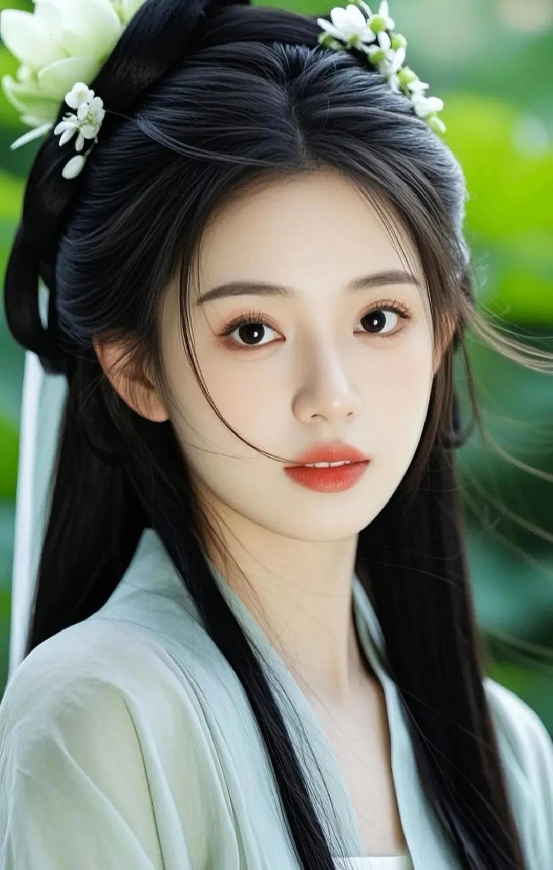 惊艳的古典美女,红唇与黑发相映成趣,古风服饰尽显优雅!