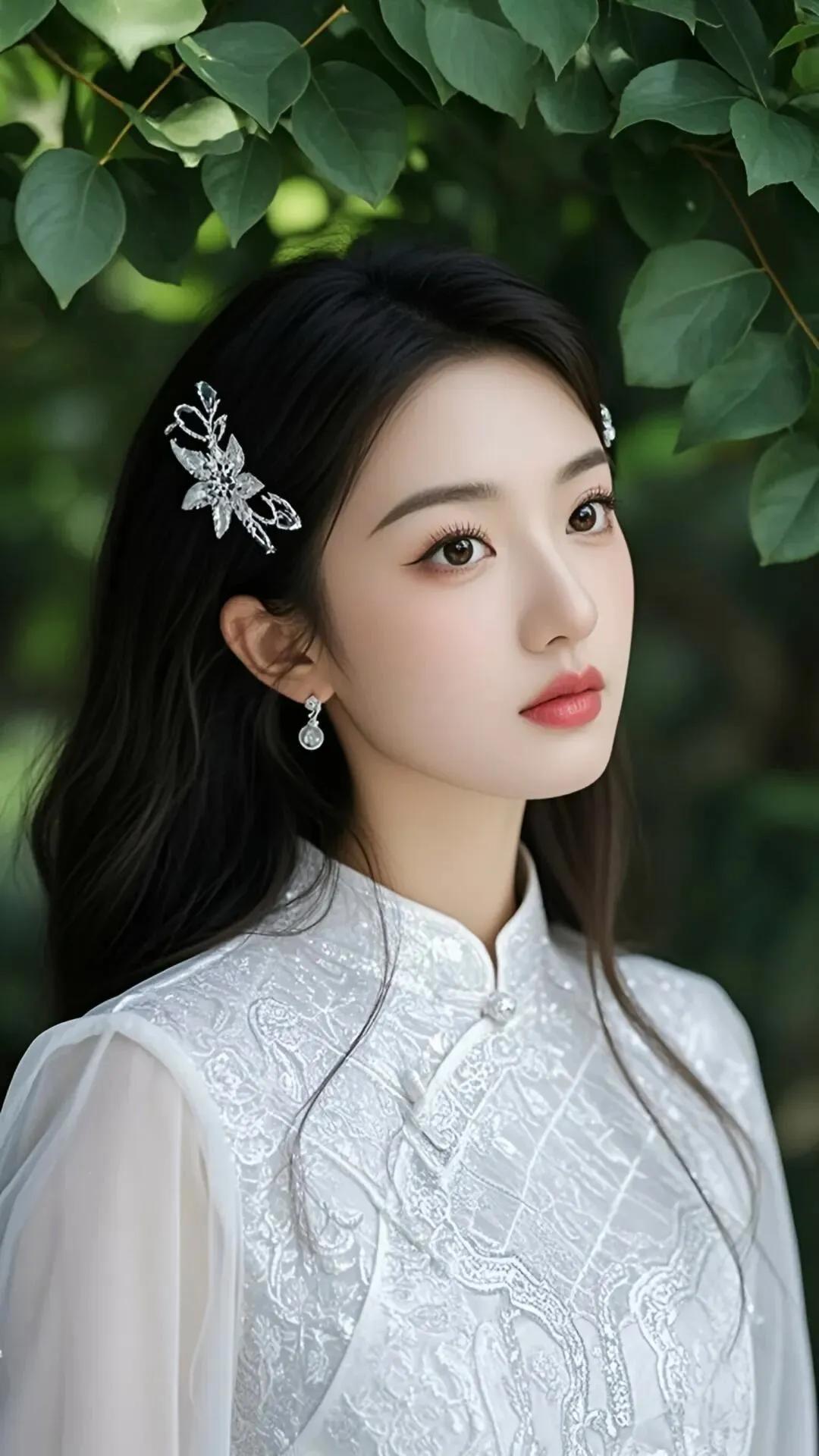 优雅白纱,珍珠项链,温柔微笑,梦幻少女心