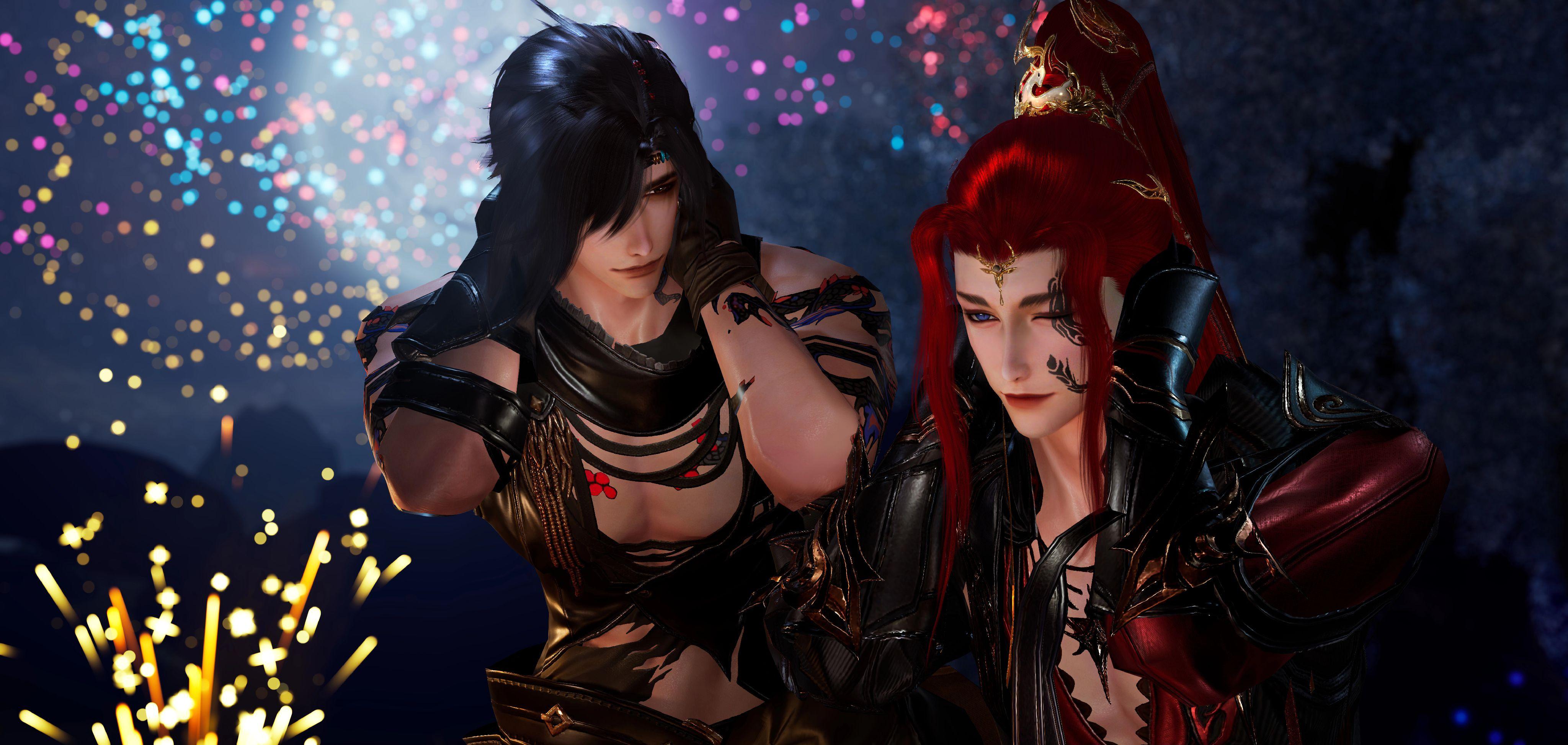在烟花声中迎接与你的下一年。剑网3 剑网3联动刺客信条王朝 剑网3无界 丐明 剑网三编辑器 耳畔响起烟花爆竹声 是我们新的序章