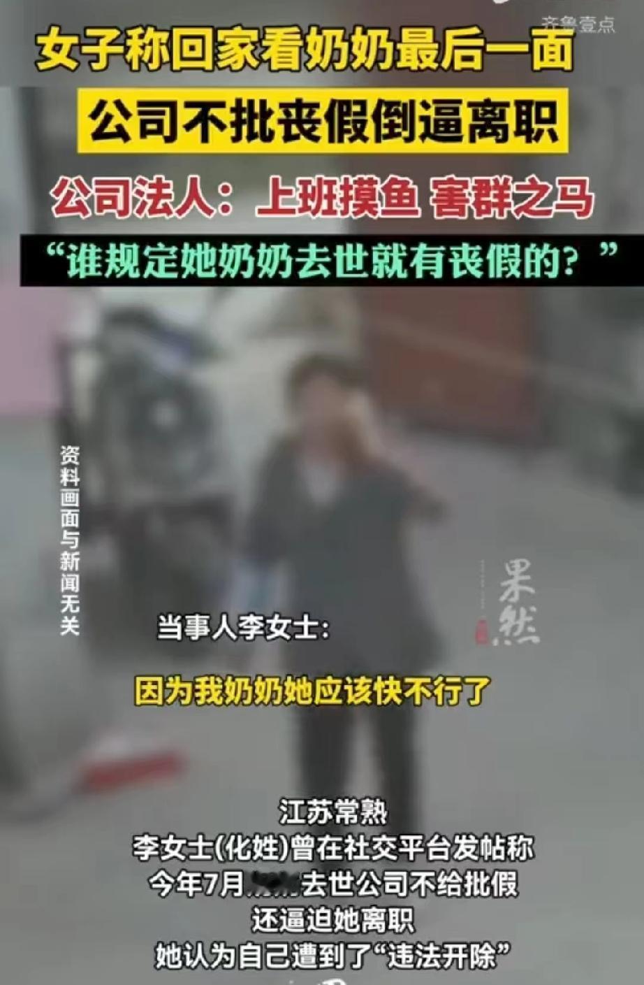 江苏常熟,女子奶奶去世,她向公司人事请完假,坐上回家高铁后,公司突然通知她,老板