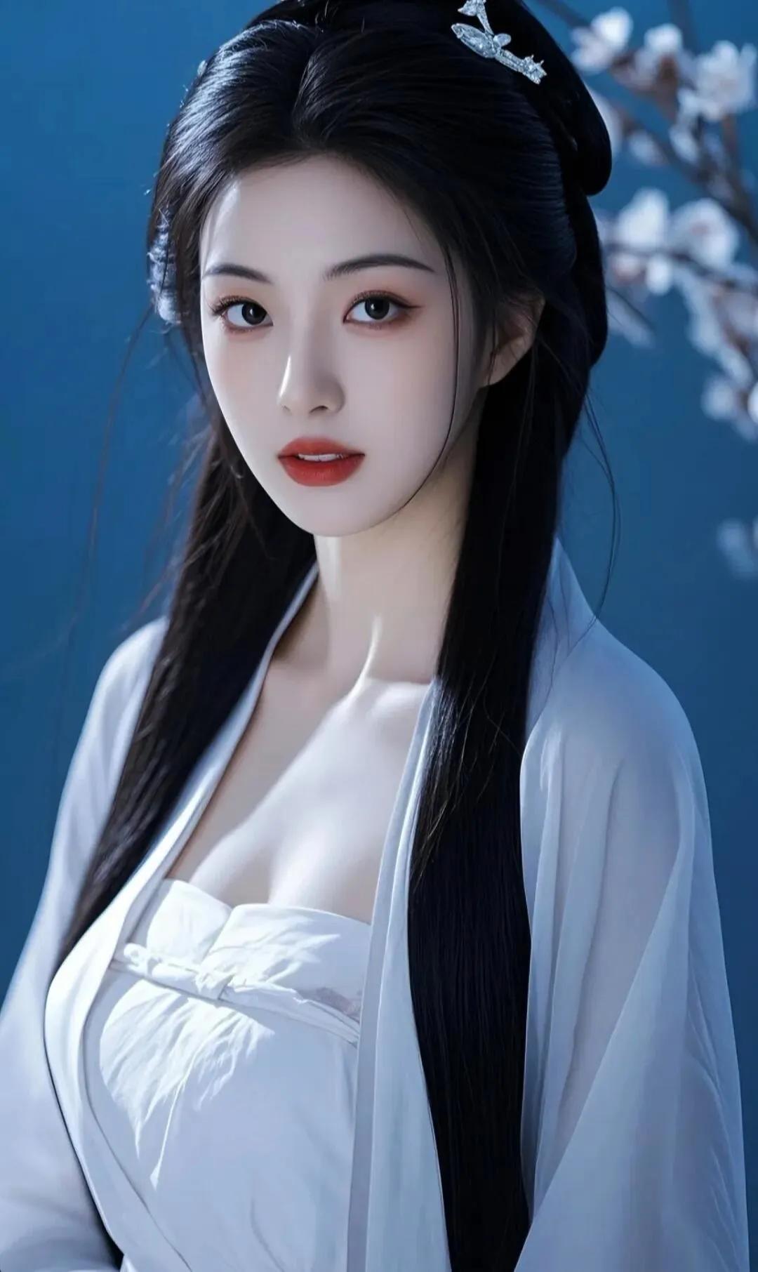 惊艳的古典美女,红唇与黑发相映成趣,古风服饰尽显优雅!