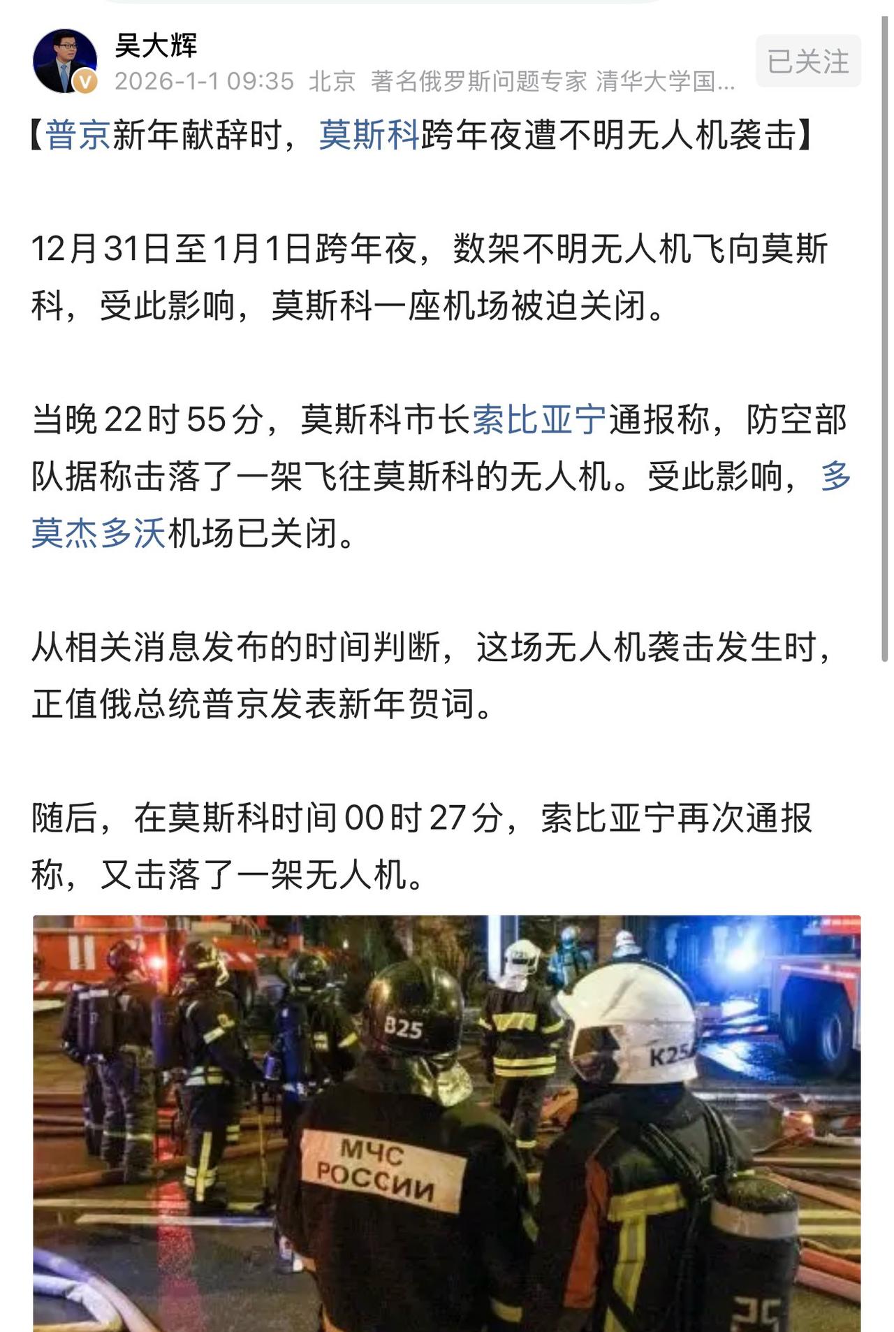 跨年夜,莫斯科遭无人机袭击,机场临时关闭!去俄罗斯旅游,尽量选择陆路前往!