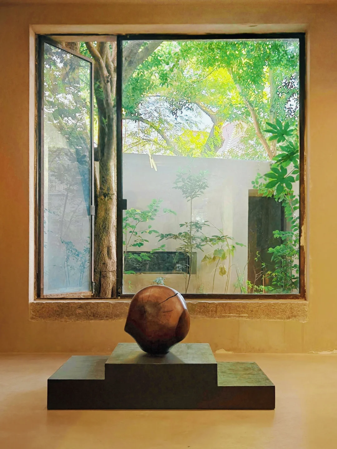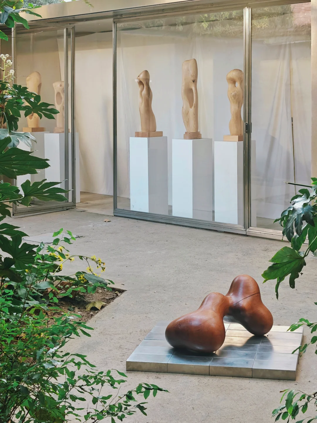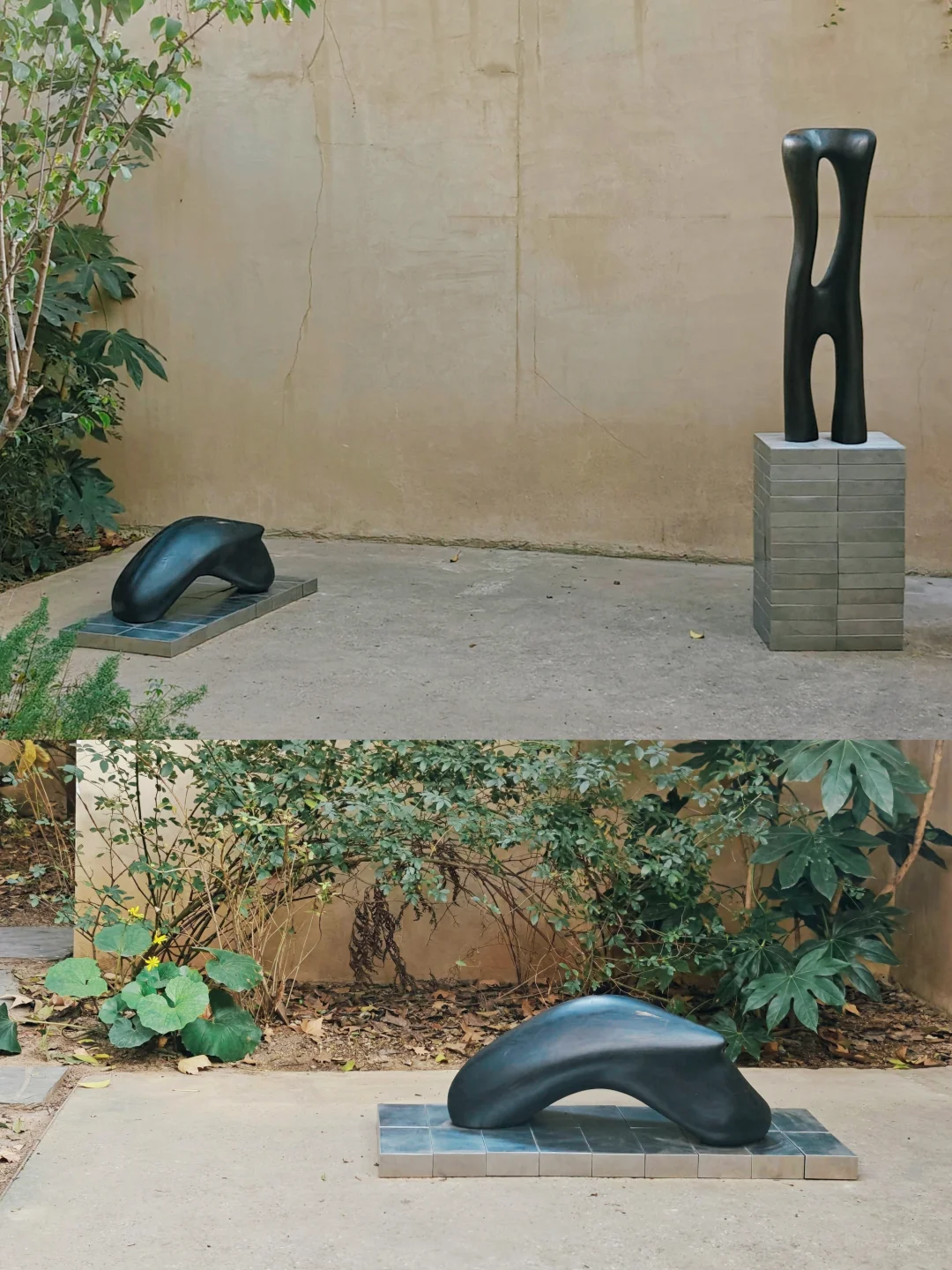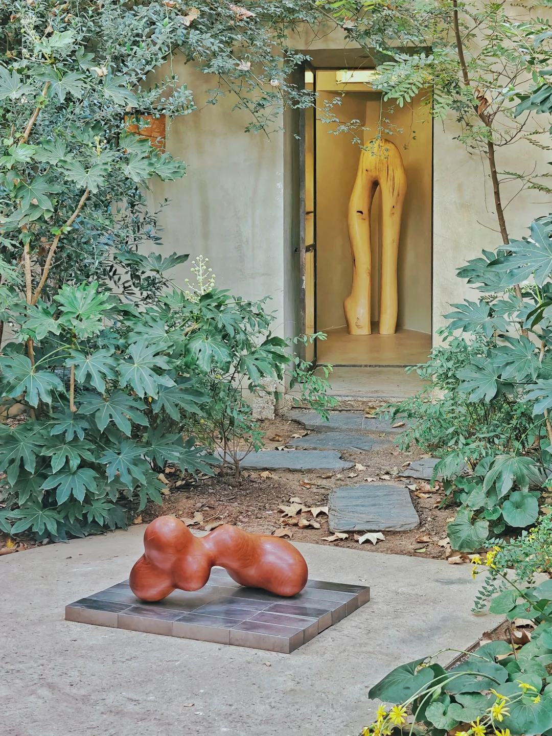 与庭院中的作品“对峙”时