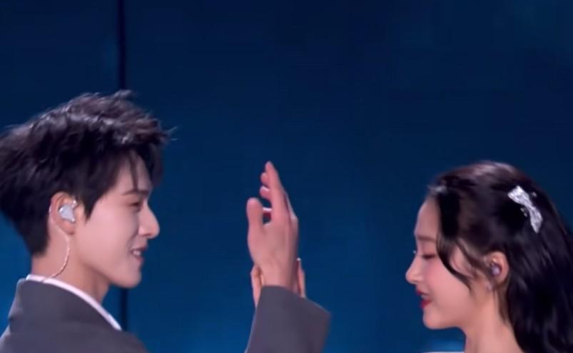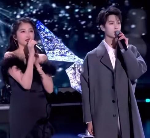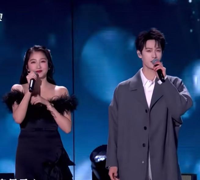 关晓彤和李昀锐同台,这肤色差也太离谱了吧? 12月31日卫视跨年晚会,两人合唱《