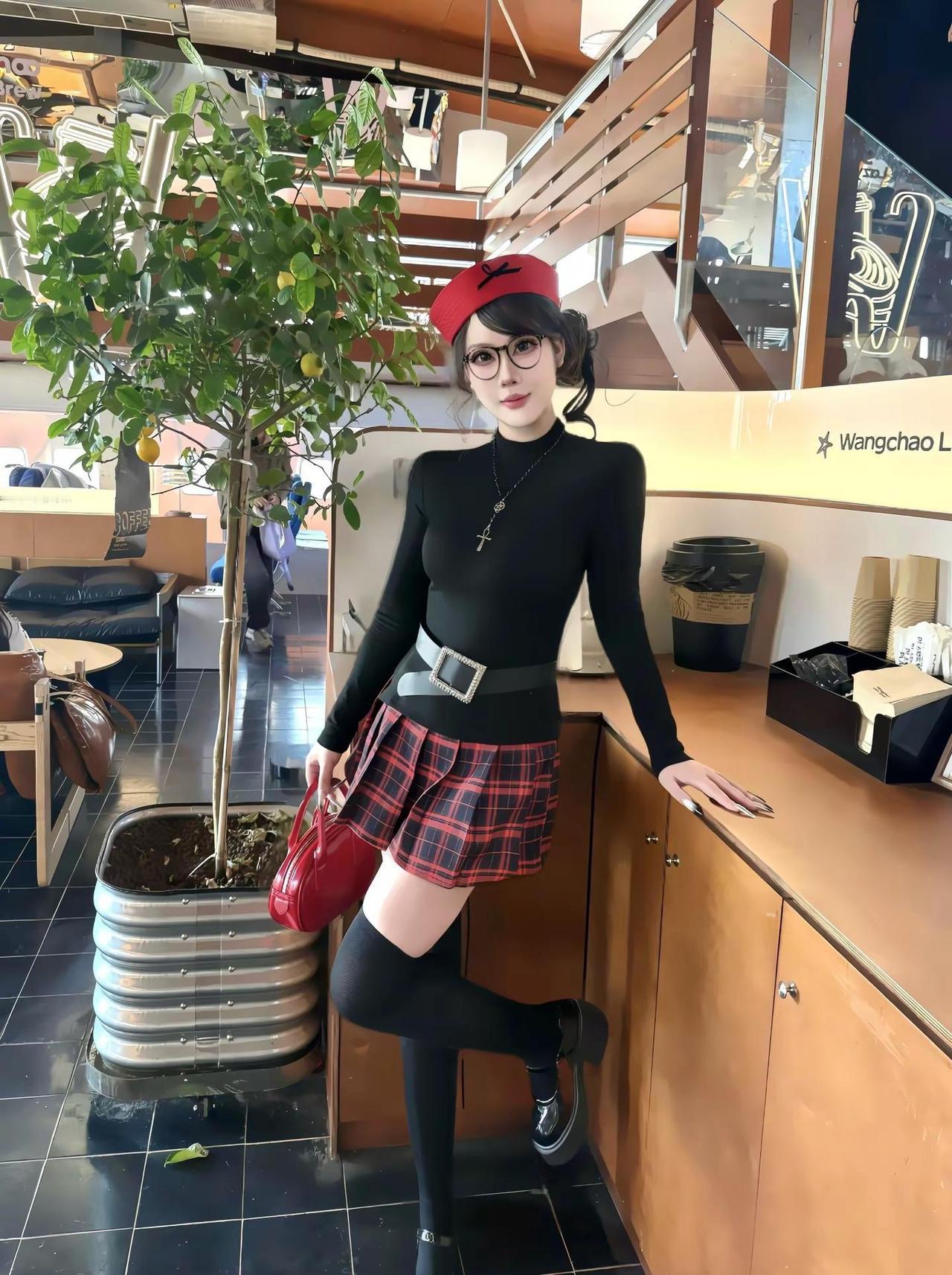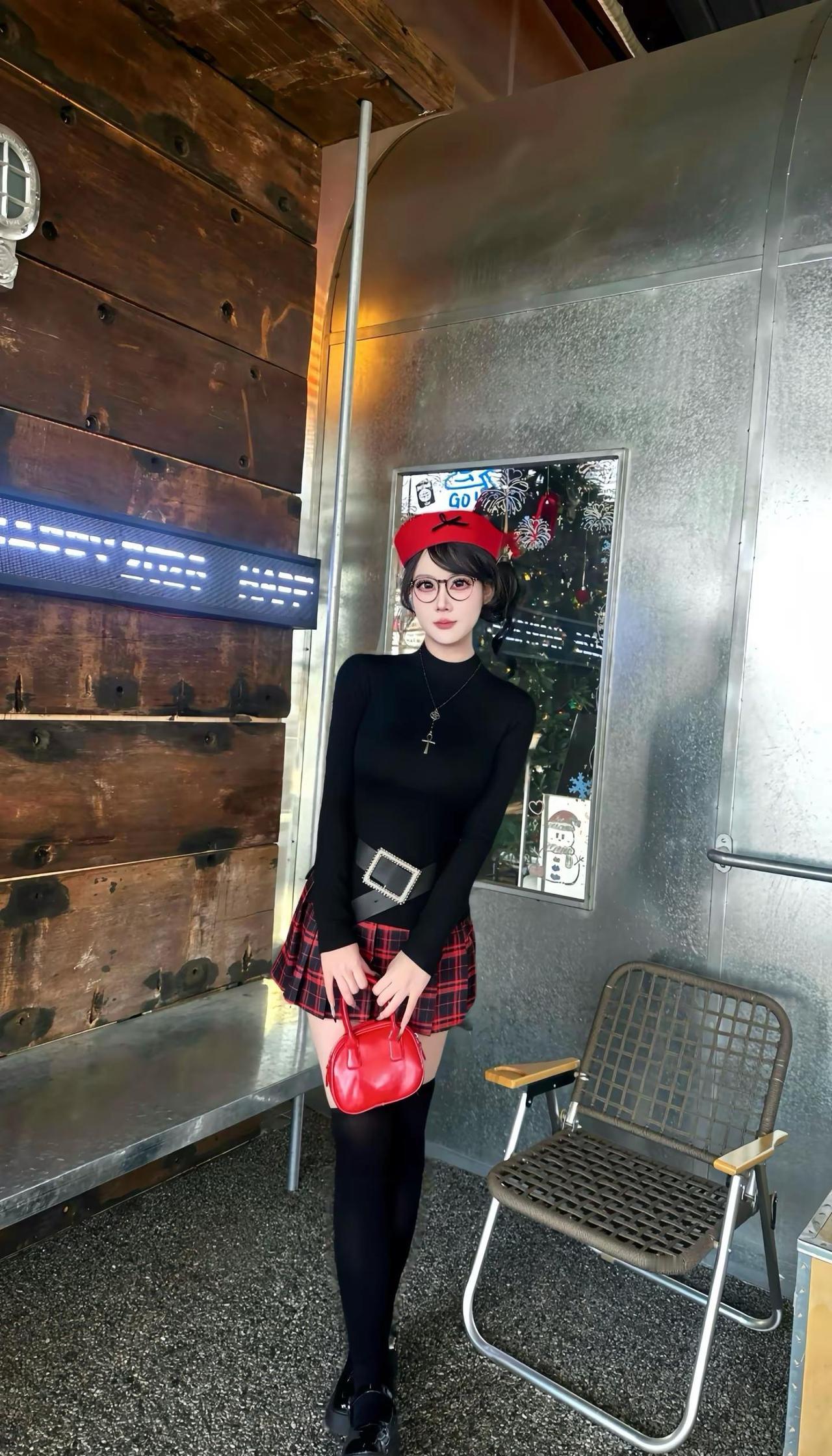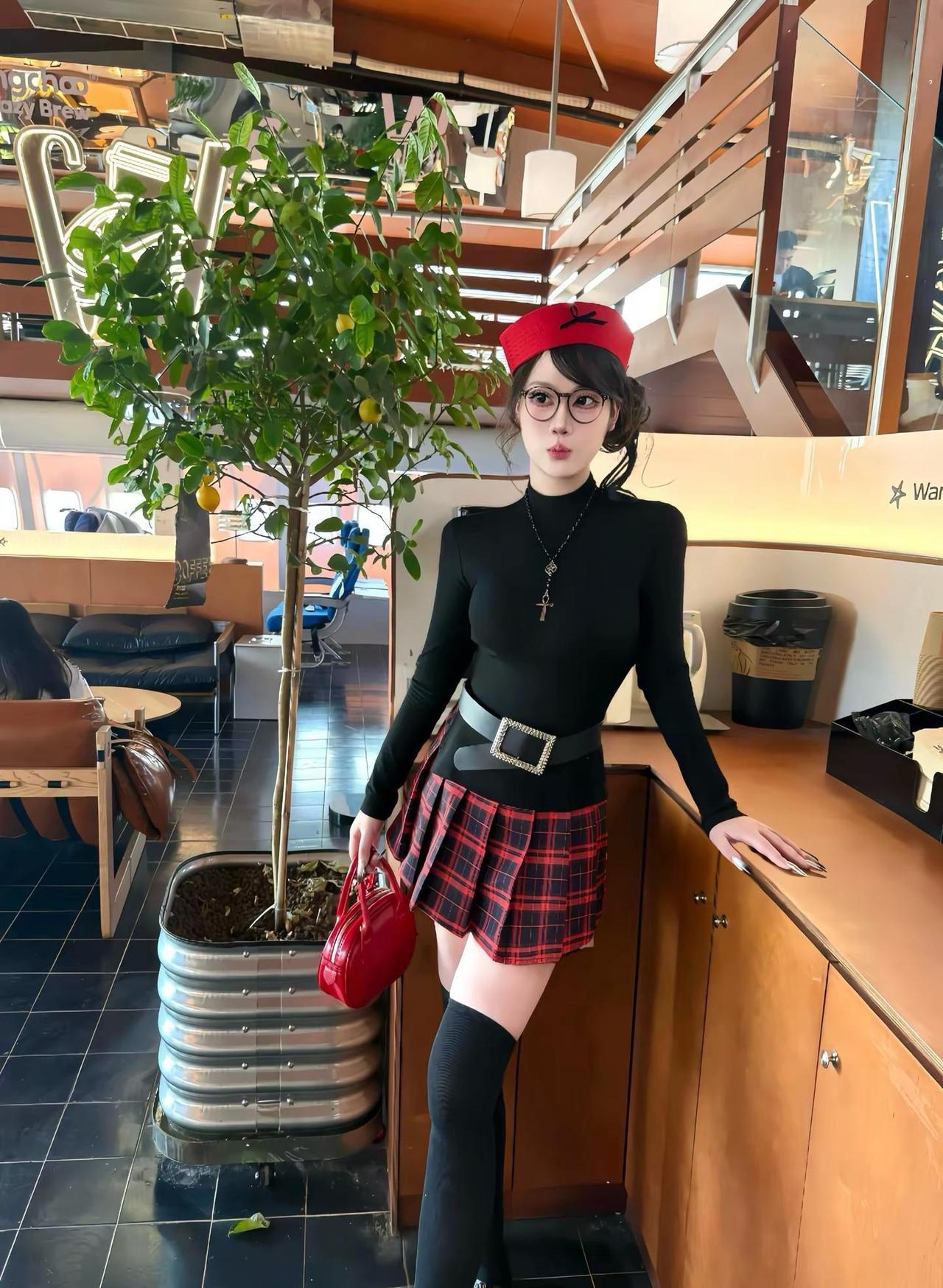 她穿着miniskirt 好像宁艺卓站在这儿宁艺卓miniskirt