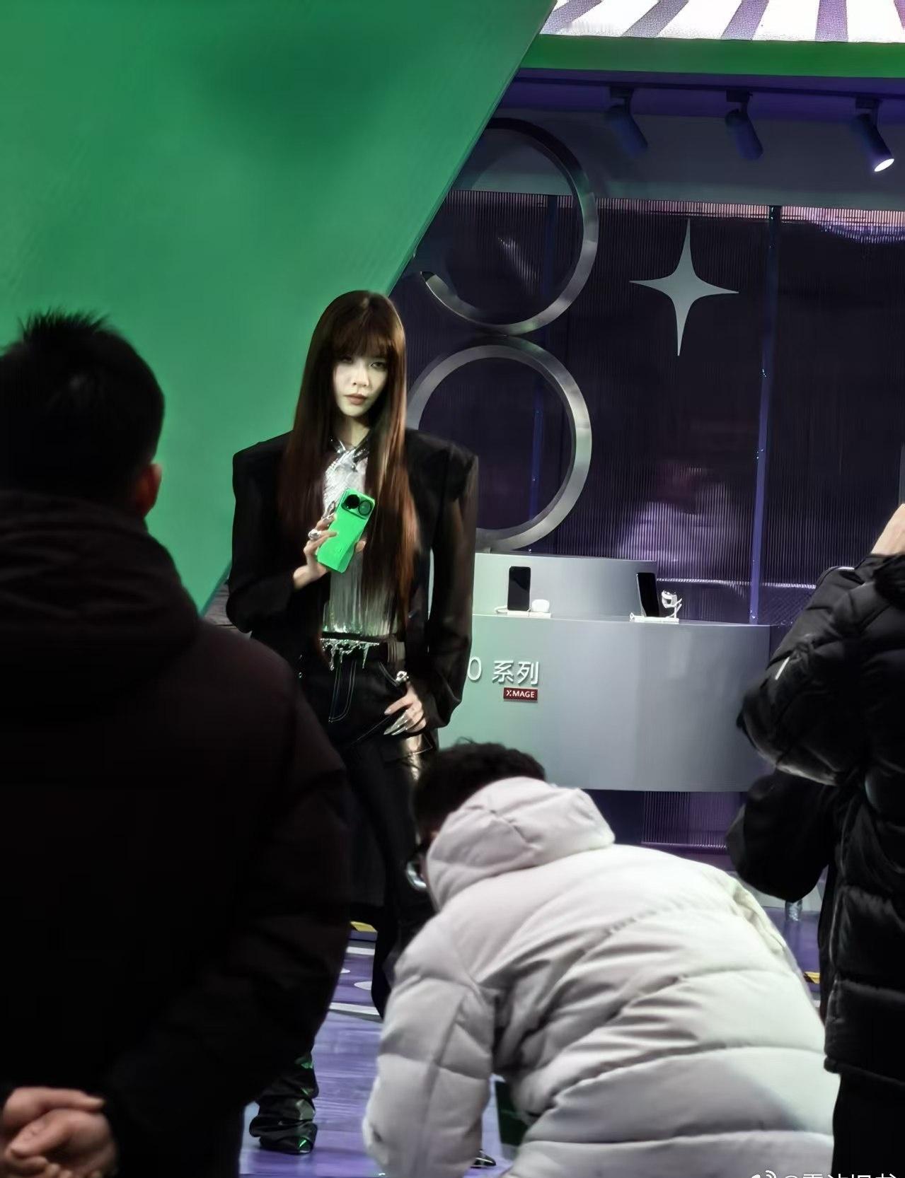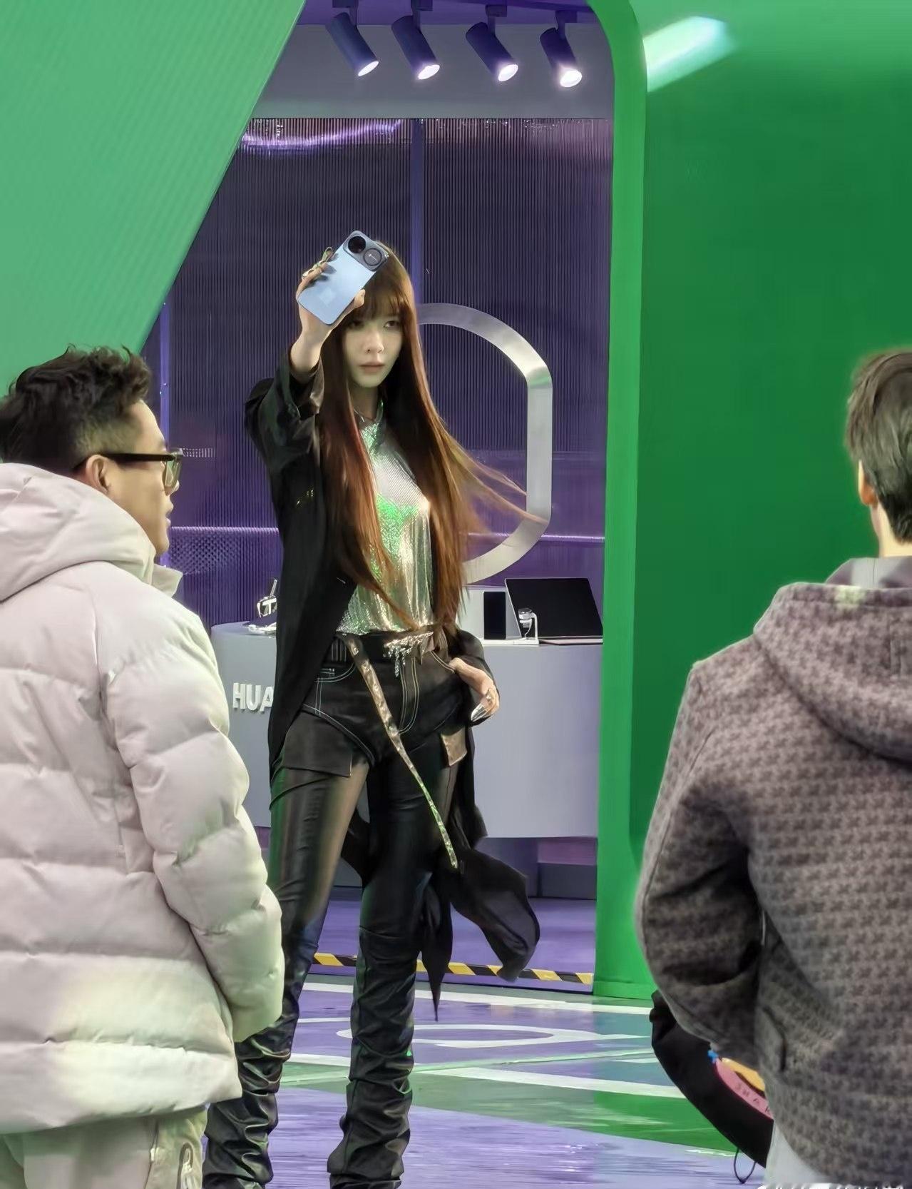 亮片元素点亮整体造型,未来感与辣妹风无缝衔接,宋妍霏这套新look直接戳中时尚爱
