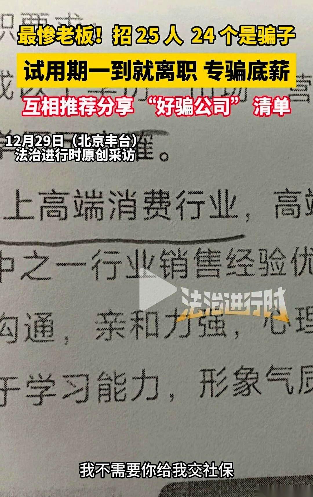 招25个人,24个是骗子。 就留一个独苗,是老实人。 我跟你说,这事儿现在看像个段子,但身在职场的,谁心里不咯噔一下?这哪是段子,这是事故现场。 现在好多老板招人,哪是招人啊,纯纯是在许愿池里扔钢镚儿。 又要你十八般武艺样样精通,又要你吃苦耐劳心态年轻,还得有刚毕业那股子不要钱的冲劲儿,完了最好还能自带资源,来了就能开花结果。 听着是不是特耳熟? 可关键是,你猜猜,满足这所有条件的“神仙”,他开多少钱? 工资条一拉,数字让你想掏出自己的钱,问他一句:“哥,要不我给你投点?” 你琢磨琢磨。 一个正经人,一个有真本事的人,看到这种要求,第一反应是啥? 是“神经病啊”,然后默默关掉页面,顺手把这家公司拉黑。因为人家知道自己值几斤几两,不陪你玩这种过家家的游戏。 那剩下的呢? 剩下的,就是那些“专业的”。 他们存在的意义,就是为了满足你这种不切实际的幻想而生的。你的要求只有他们能满足,你的“愿望清单”,只有他们能一项项打勾。你想要六边形战士?他能给你画个八边形出来。 所以啊,别天天抱怨现在的年轻人不行,也别说招不到靠谱的人了。 有时候,真不是池子里没鱼。 是你那个鱼饵,它就只配钓上来一堆王八。