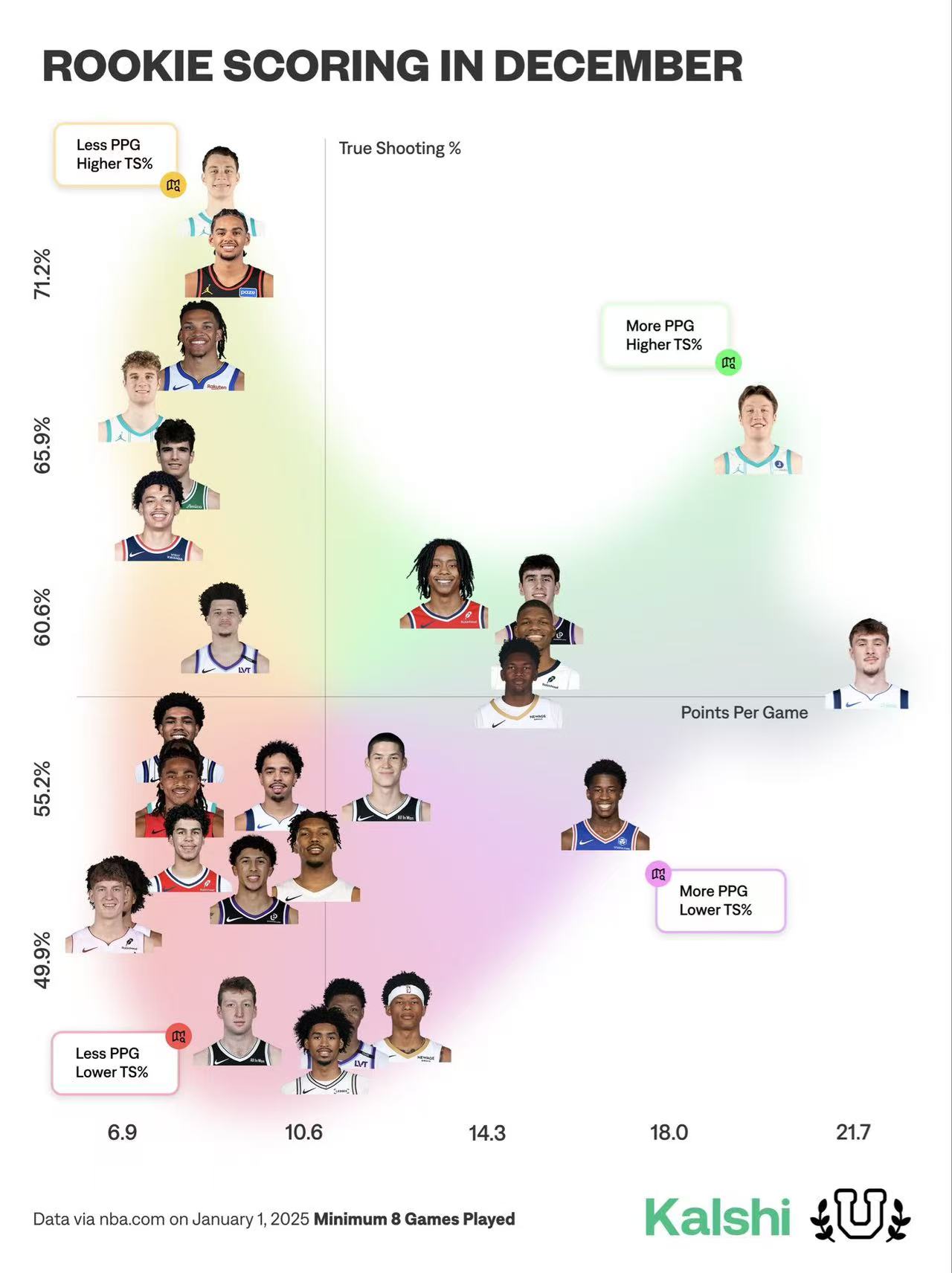 最近有数据统计网站给出了常规赛开赛之间的两张统计数据。 在球队攻防统计方面,能看到雷霆队依然拥有巨大的领先优势,他们的场均防守效率高居联盟第一,甚至与后面球队拉开了非常大差距,同时在得分方面,雷霆也位居前五的位置。除了雷霆队之外,像掘金、尼克斯、凯尔特人和火箭队,都属于进攻和防守排在联盟前列的球队。 而在另外一张新秀统计表中,能看到在得分方面,状元弗拉格的优势非常明显,而在真实命中率方面,黄蜂队在34顺位选择的瑞安-卡尔克布伦纳则排在第一,不过将这两者结合的最好的球员,还要属黄蜂队今年的首轮4顺位新秀康-克尼普尔!