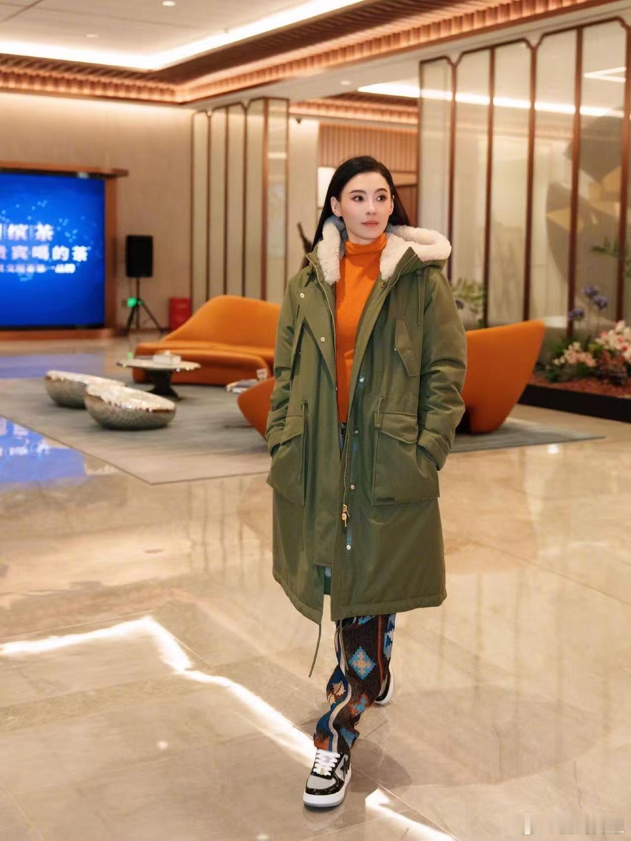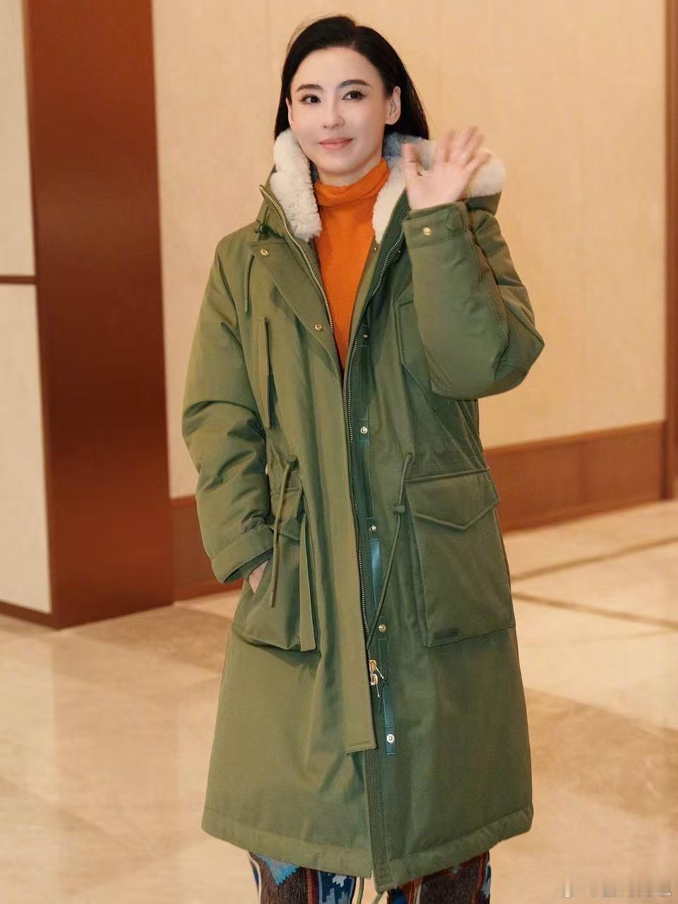 张柏芝气质太出挑了!军绿色长款外套搭配印花休闲裤,一身造型清爽利落,完全看不出半点大妈味!