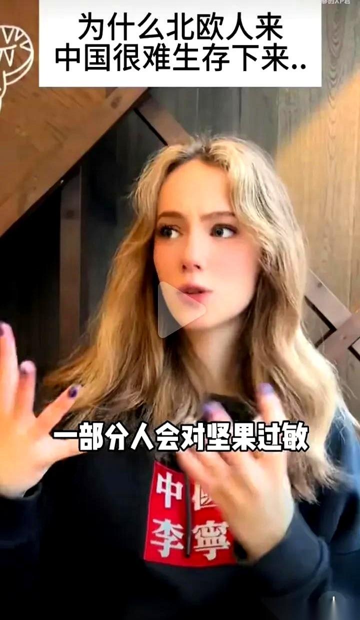 刷到一个北欧美女的吐槽,直接给我说不会了。 她说,对很多北欧人来说,在中国“生存”下去,是件挺难的事儿。 难的不是别的,就是路边摊、小饭馆、菜市场里那些再普通不过的东西。 她说,有人吃口面,就得进医院,因为对小麦过敏。有人吃个摊鸡蛋,身上就起反应。还有人,连街边飘过的花粉味儿都受不了。 最离谱的是坚果。 她说有些人,甚至都不用吃到嘴里,就是路过一个炒栗子的摊子,闻到那个香味,人就直接往后倒,喘不上气。 整个世界在他们眼里,好像布满了看不见的地雷。 但怪就怪在,我之前也听过一个说法。说一个美国人,在他们国家吃坚果就过敏,浑身难受。结果来了中国,吃这边的坚果,一点事儿没有,吃得嘎嘎香。 这就很有意思了。 到底是一方的水土养出的身体,已经适应不了纯天然的环境了?还是说,这背后另有原因?