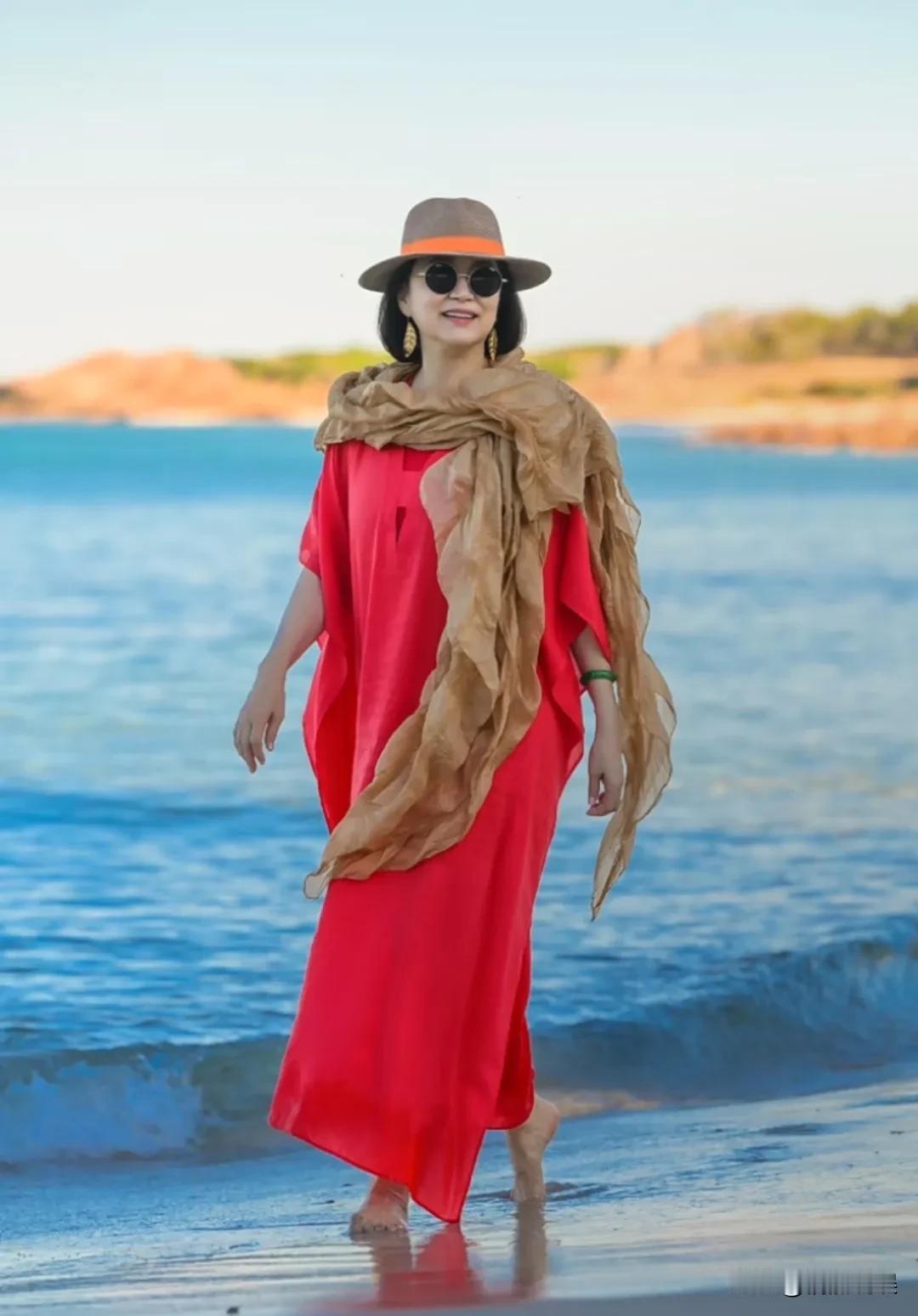 不愧为曾经的台湾第一美人啊,岁月都愿意为她绕路。 71岁的林青霞戴着一顶圆帽,穿着一身大红色宽松长裙,脖子上围着围巾,手腕上戴着一只价值不菲的帝王绿手镯,赤着脚走在沙滩上。 她的脸有点发腮,身材也有点发福,但是这不妨碍她的美,哪怕如今的她没有年轻时的美貌,但是从骨子里散发出来的优雅,看起来无比的舒服。 果然,岁月不败美人这句话是真的。 感觉娱乐圈里她是活得最通透的,不受婚姻困扰,不被年纪束缚,永远做着自己想做的事,活成了自己想要的样子!