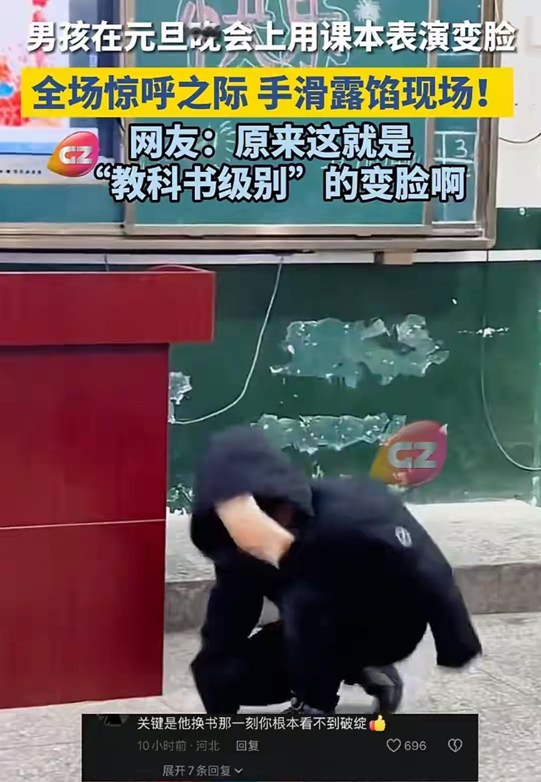 元旦晚会的宝藏名场面来了!一名男生仅凭几本课本,硬生生演了一出超惊艳的“变脸”,简直绝了! 男孩手拿不同封面的课本快速切换,动作行云流水,换书的瞬间几乎零破绽,台下同学惊呼一片,氛围感直接拉满。结果表演途中一个手滑小失误,当场完美露馅,画风瞬间从惊艳变成搞笑。 网友笑翻,纷纷调侃这才是名副其实的“教科书级别变脸”,还打趣“成功是老师的心腹大患,元旦全是班级宝藏”。勇气满分,创意无敌,这份可爱又认真的表演,真的太有新年欢乐感了!