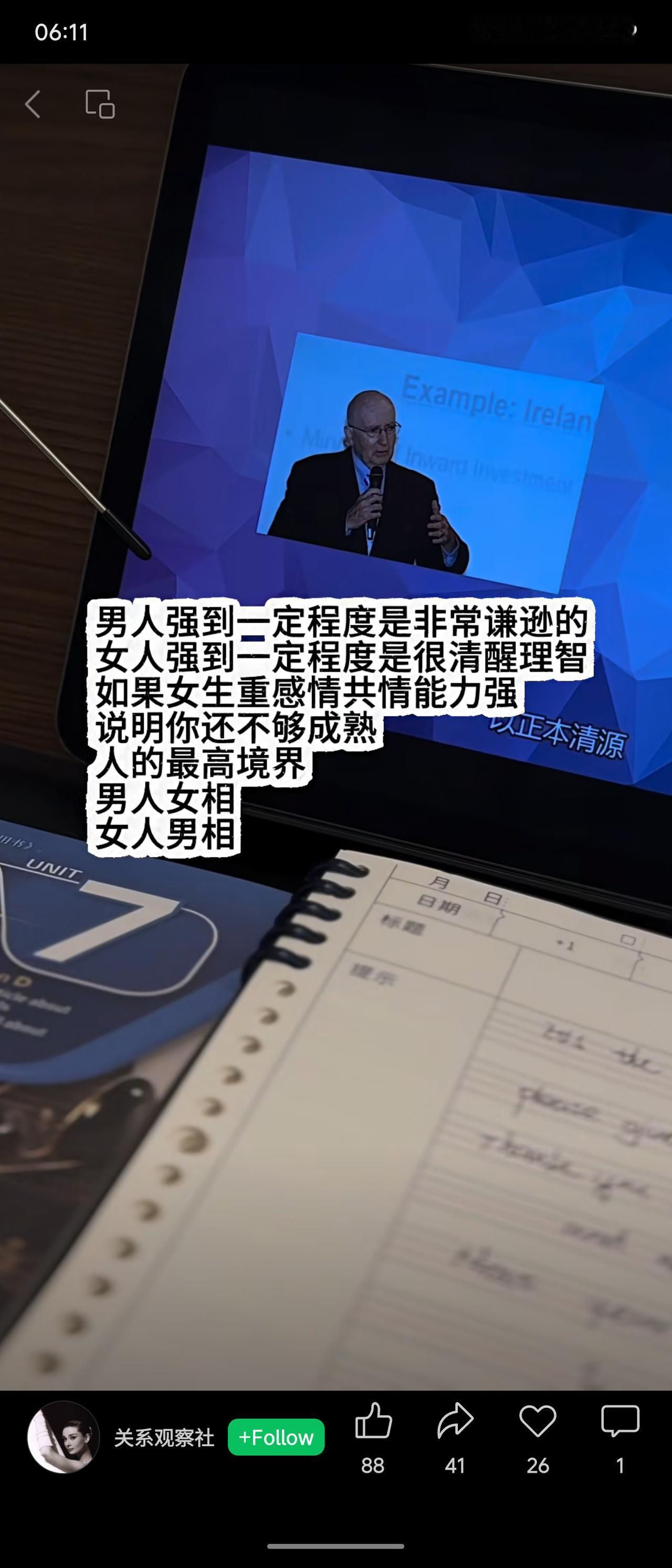 当男性强大到一定程度会表现出谦逊,而女性强大则会变得清醒理智。它提出,女性若过于重感情和共情,可能意味着不够成熟。其推崇的“最高境界”是性别特质的交融,即“男人女相,女人男相”。