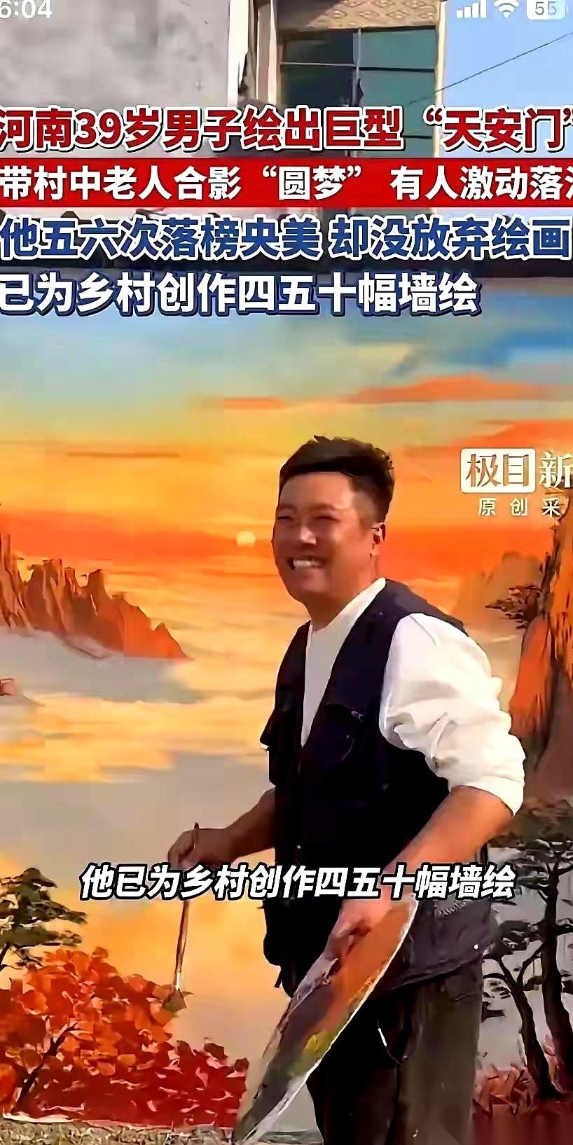 我跟你说个事儿,真挺魔幻的。 一个河南的农村小伙,初中毕业,硬是用画笔在墙上“修”了一座天安门。 那气势,那感觉,我一个大老爷们儿隔着屏幕看都想立正,眼眶子发热。 人民日报都亲自下场给他点赞,几万万的网友说这才是我们心里的样子。 结果呢? 那些科班出身的,所谓中央美院的“专家”、“教授”,屁都不放一个。 安静得像集体掉线了一样。 我有时候就在想,什么叫艺术? 非得是挂在卢浮宫里,旁边配一串谁也看不懂的法文,才叫艺术吗? 非得是拍卖会上那几个零,才能定义它的价值吗? 拉倒吧。 真正的艺术,是能一榔头砸进你心窝子的东西。 是能让你一个字都不认识的老太太,站那儿看半天,嘴里念叨着“真好啊”的东西。 是能让一个天天被KPI追着跑的打工人,在刷到视频的瞬间,忘记疲惫,心里只剩下俩字儿:牛逼! 有些人的画,画的是技巧,是构图,是明暗关系。 而这个小伙子,他画的是啥? 是刻在中国人骨子里的记忆,是流淌在血液里的骄傲。 这玩意儿,学院里教不了。 因为这不是技术,这是感情,是信仰。 所以啊,别再扯什么共情不共情了。 有些人,跪久了,就忘了怎么站着跟老百姓说话了。 他们看得懂价格,却看不懂价值。 而这座墙上的天安门,恰恰就是无价的。