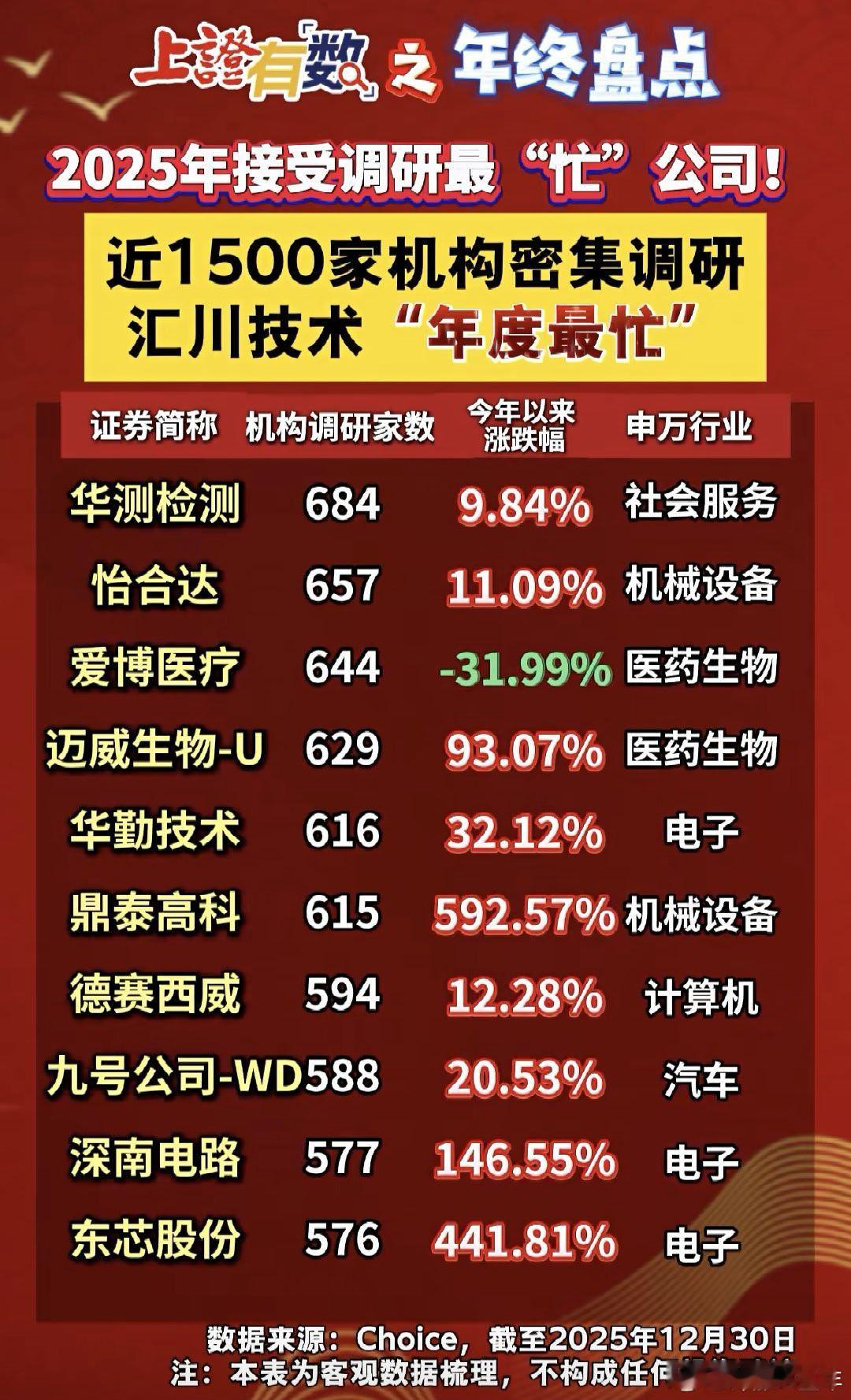 2025年机构调研榜 A股