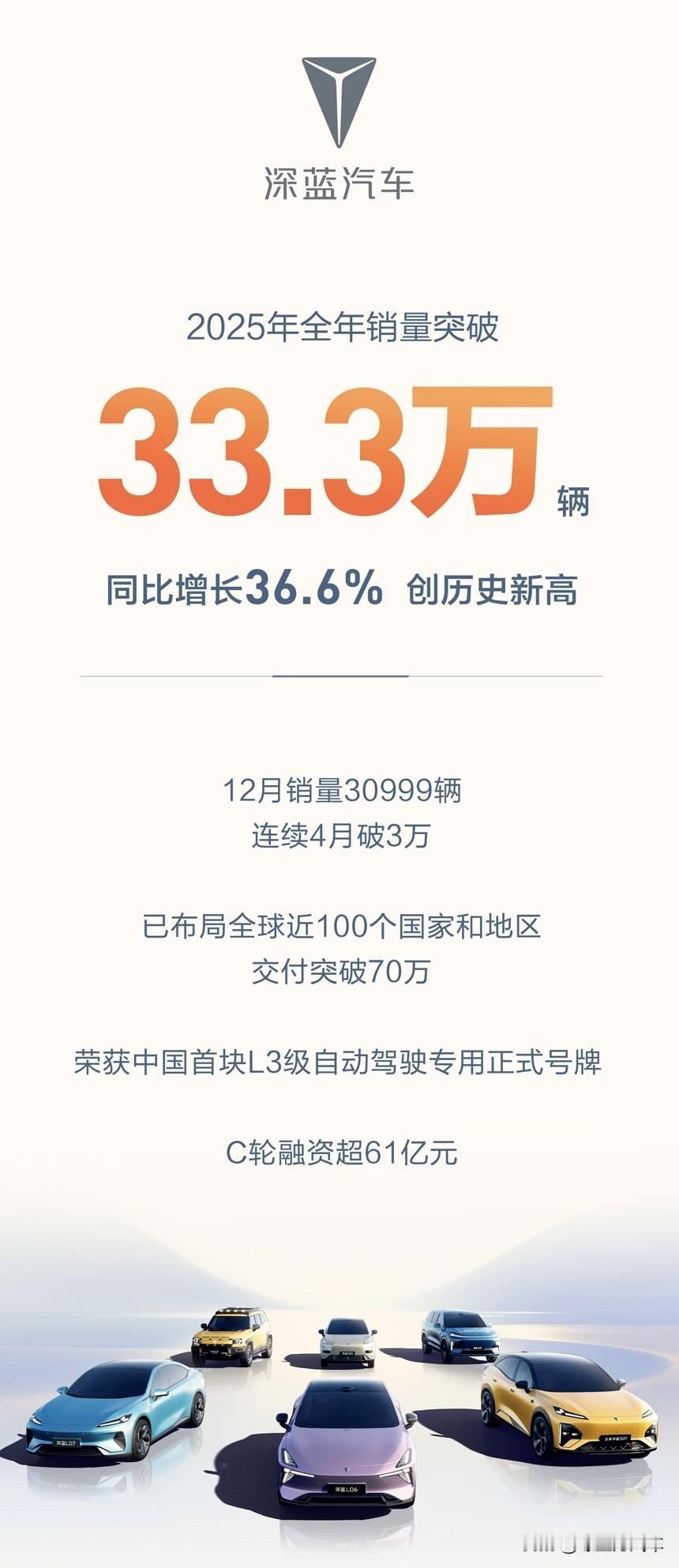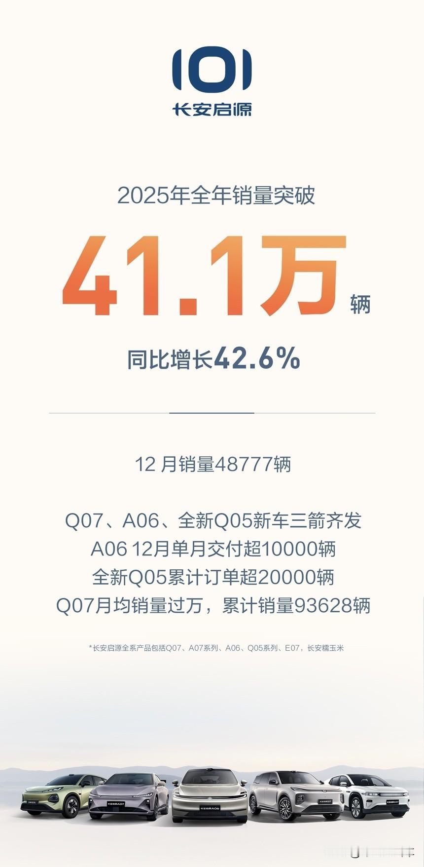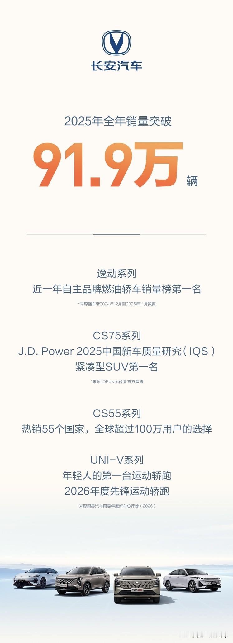 长安汽车2025年全年销量出炉! 总销量291.3万辆,同比增长8.5%,新能源销量110.9万辆,同比增长51%,海外销量63.7万辆,同比增长18.9%,具体到旗下品牌来看: 1、阿维塔全年销量突破:12万辆 2、深蓝汽车全年销量突破:33.3万辆 3、长安启源全年销量突破:41.1万辆 4、长安汽车全年销量突破:91.9万辆 5、长安凯程全年销量突破:26.1万辆 长安汽车也是品牌多点开花,成果斐然!