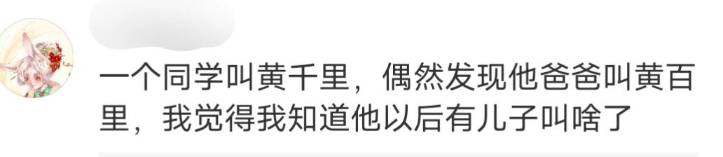 一个同学叫黄千里,偶然发现他爸爸叫黄百里,我觉得我知道他以后有儿子叫啥了