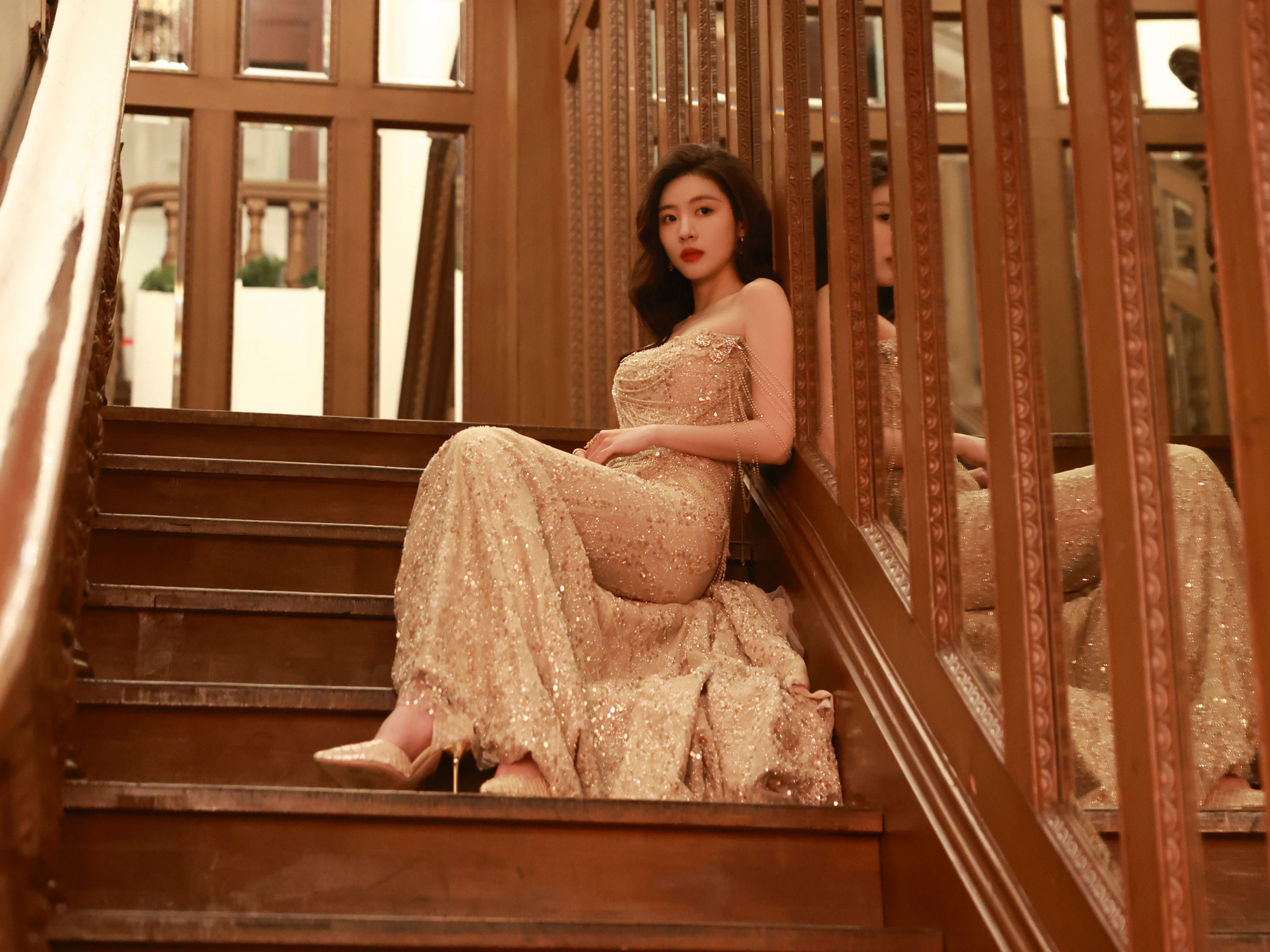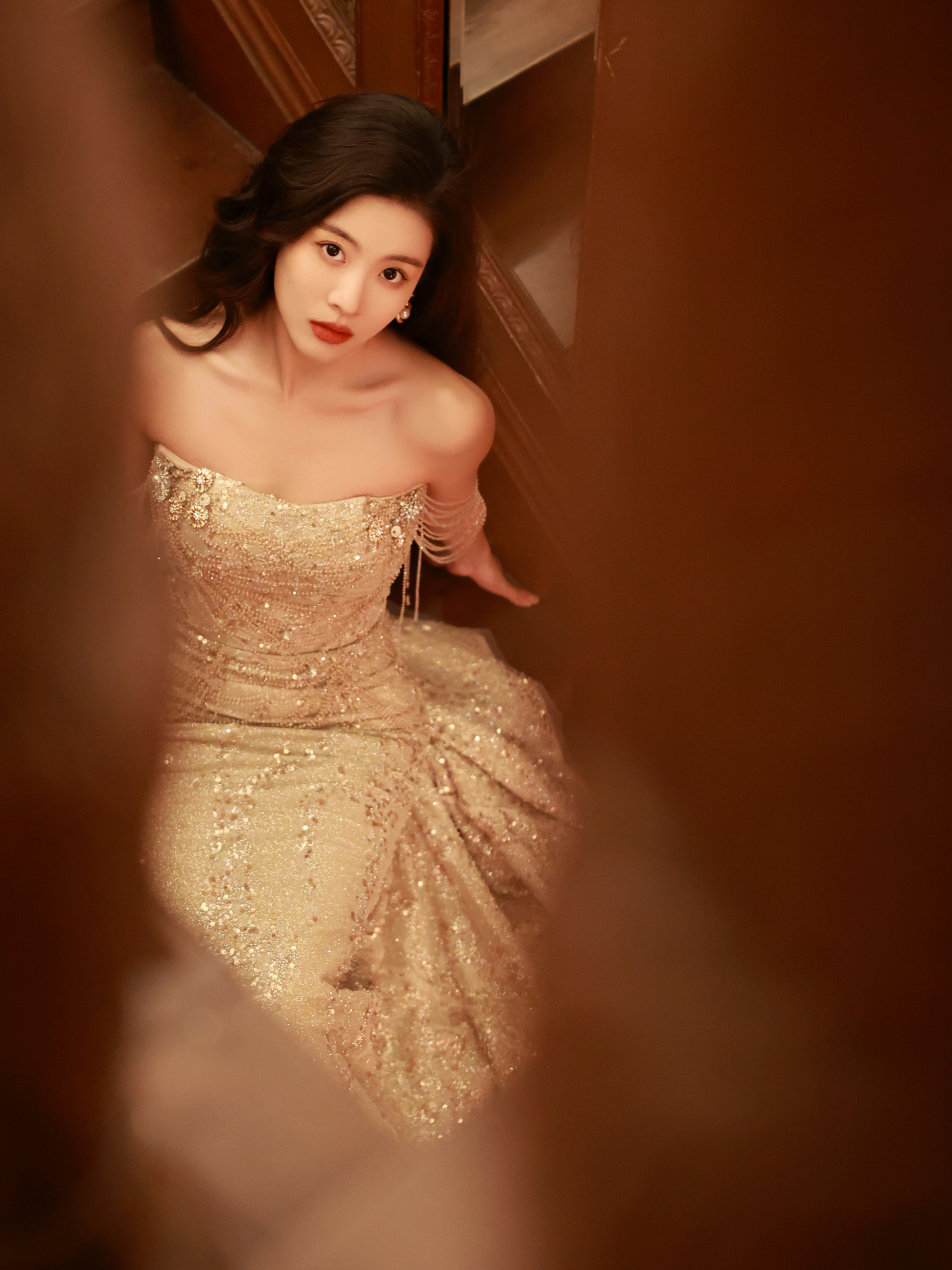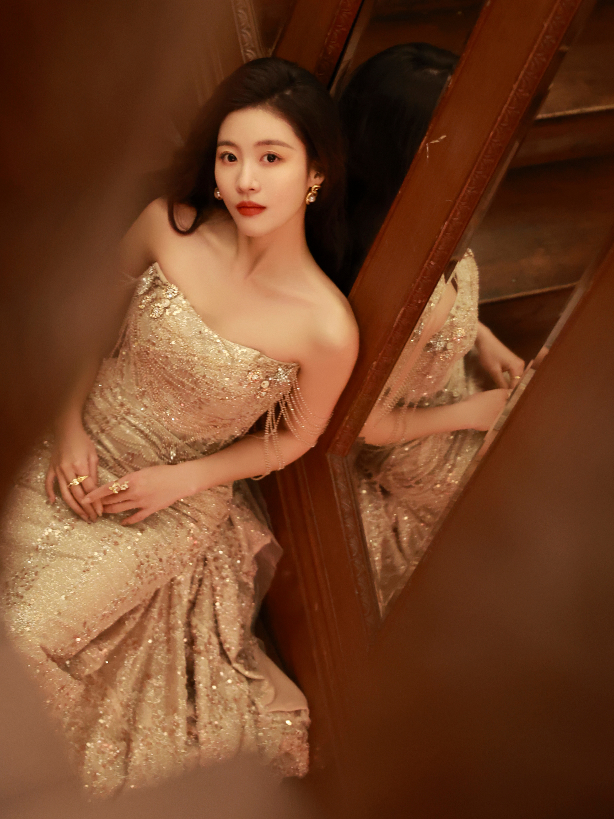 孙芮,金色柔纱,盛典美人。孙芮