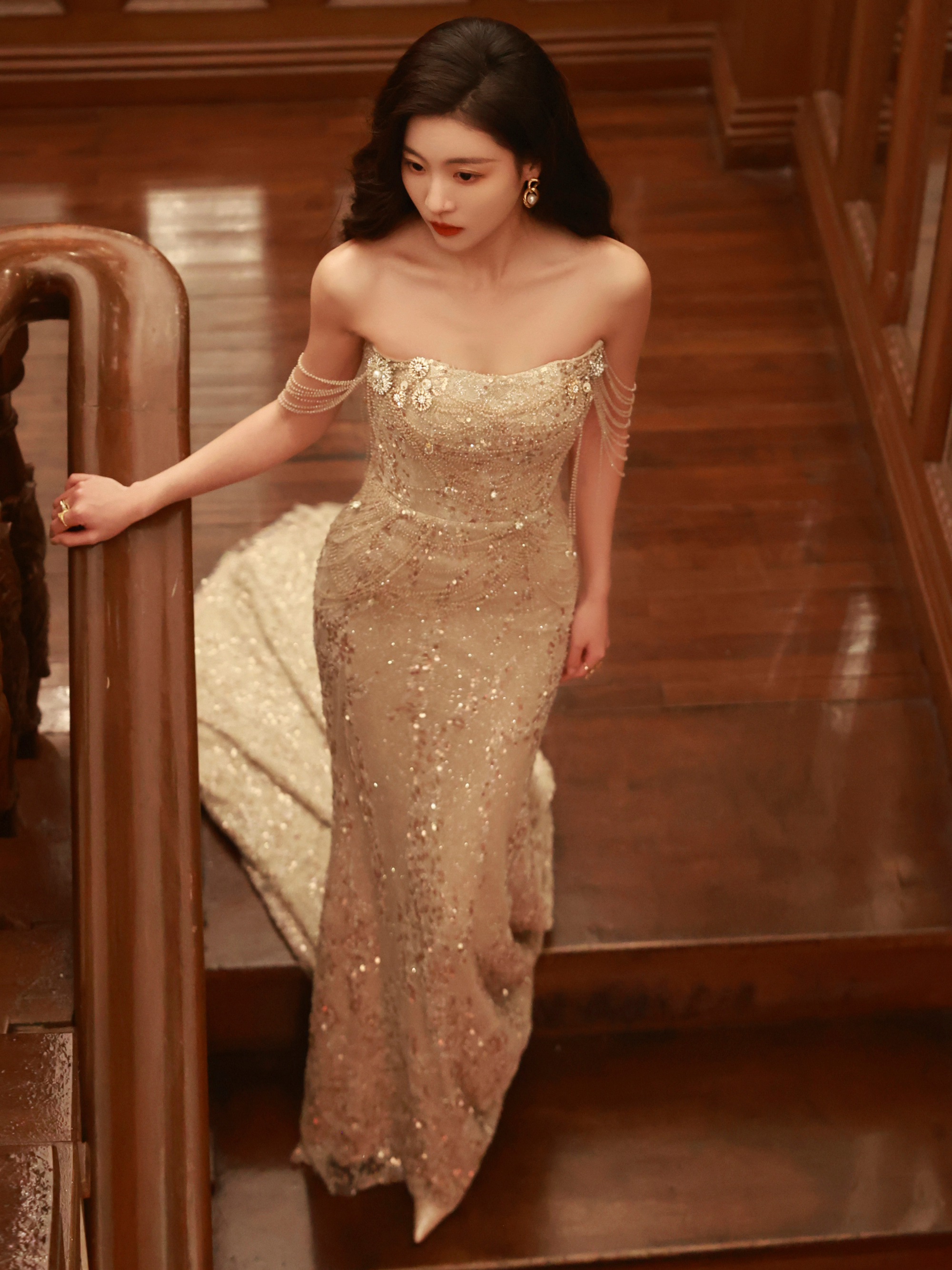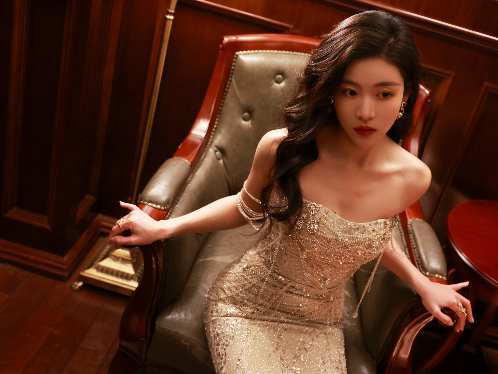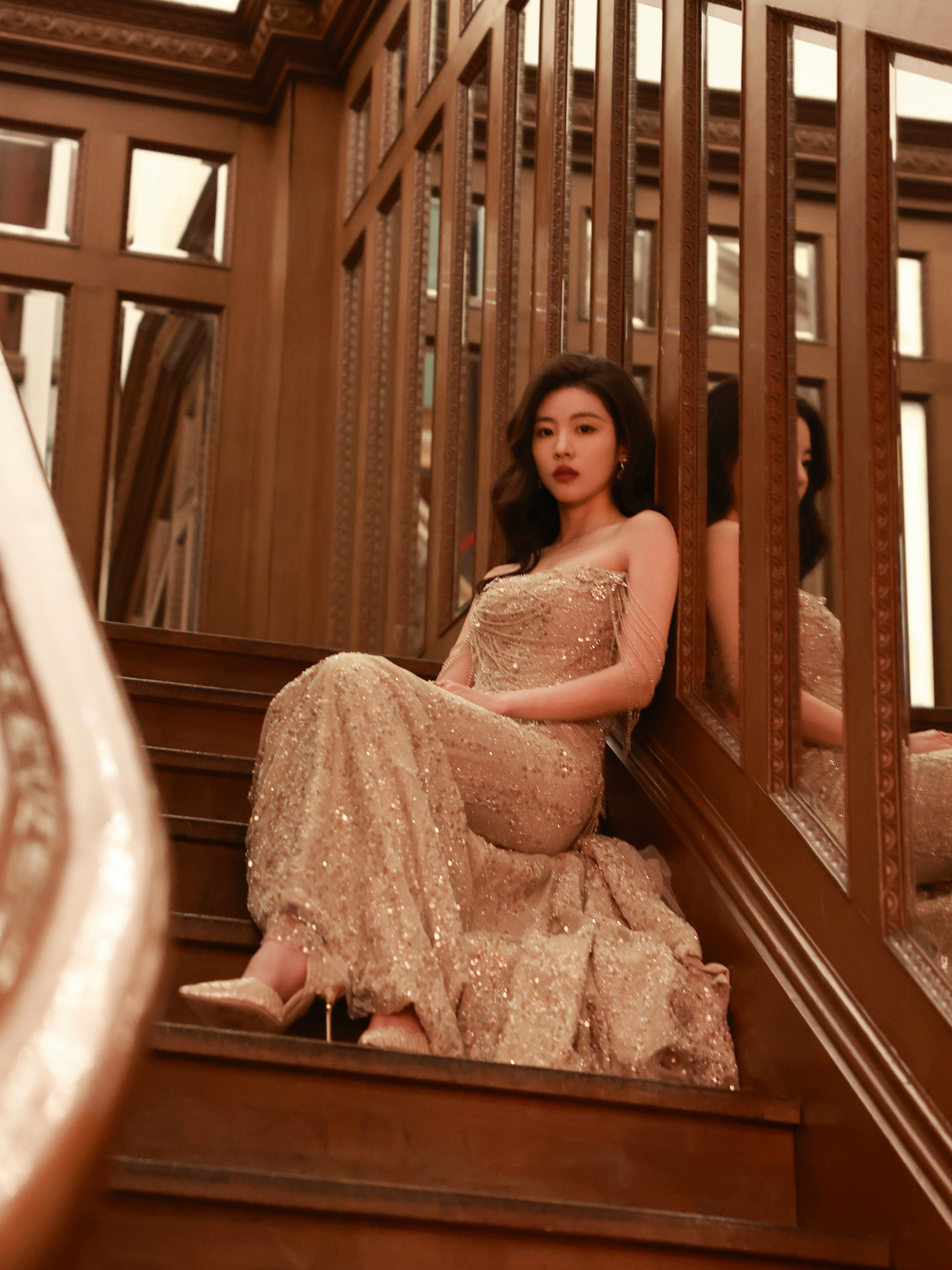 孙芮,金色柔纱,盛典美人。孙芮