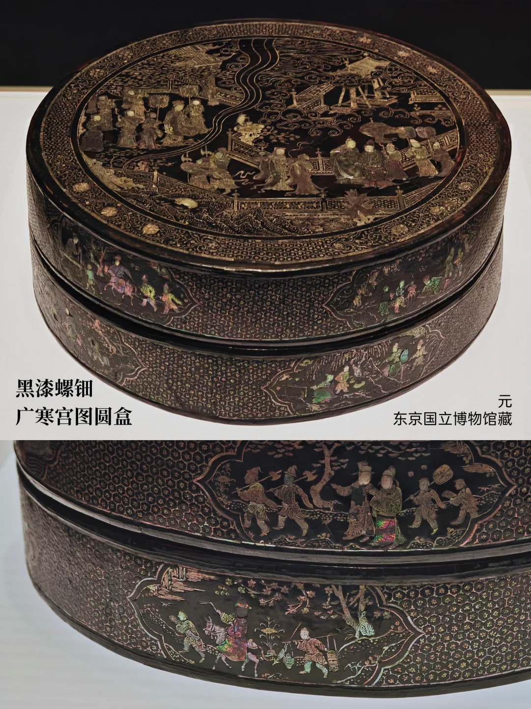 ⚫元 黑漆螺钿广寒宫图圆盒
