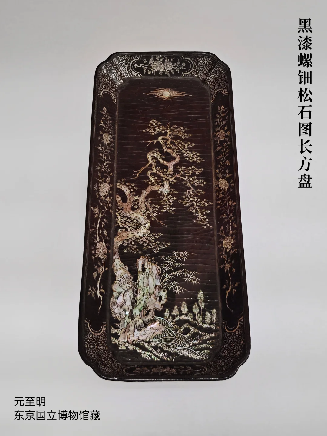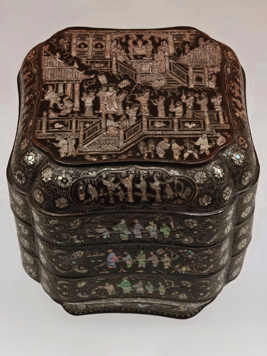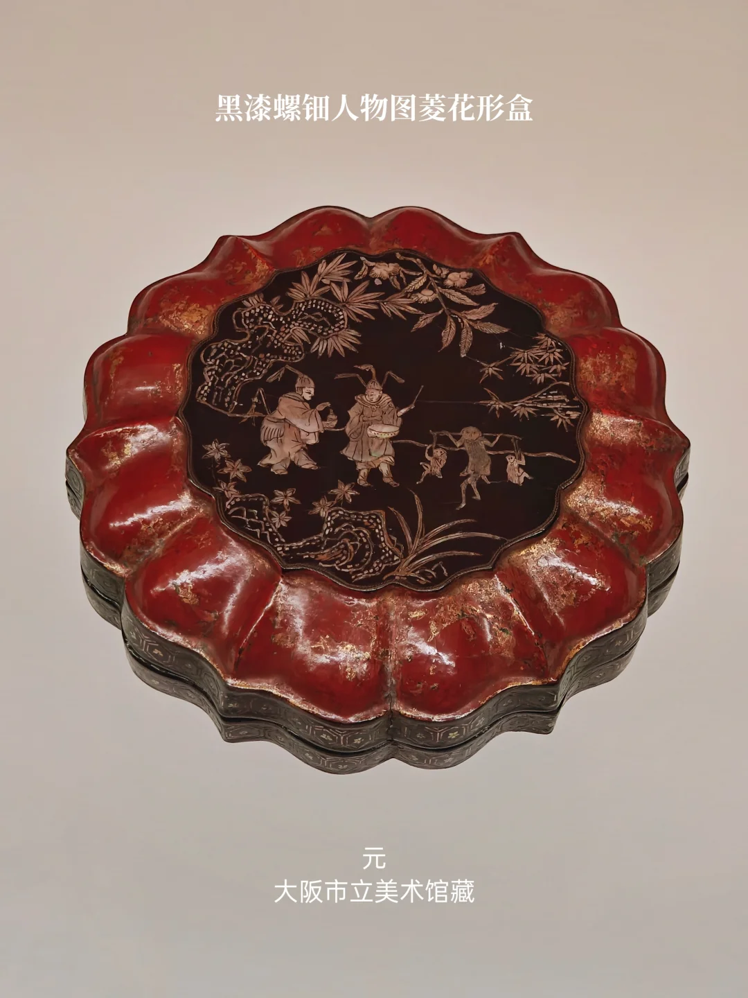厚螺钿镶嵌始于西周时期,至唐代乃臻妙境。宋元时期螺钿工艺精进,钿片渐薄,佳作迭出。区别于唐代之前常见的蚌壳,大量使用夜光螺,或与宋代开始的海外贸易有关。