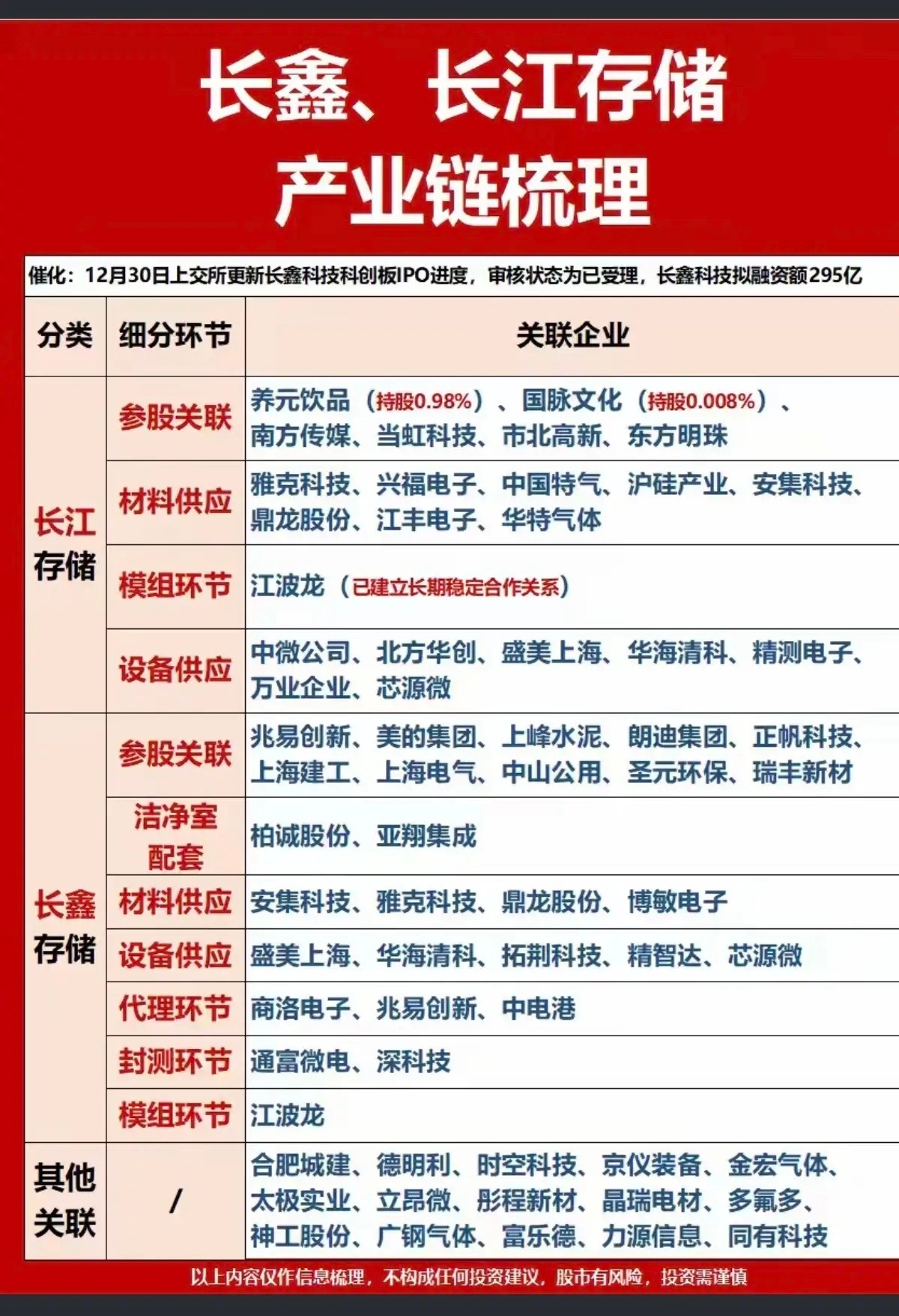 国内两大存储巨头:长鑫,长江存储概念长鑫存储IPO已受理,即将科创板上市,相关参股受益及合作关联股:
