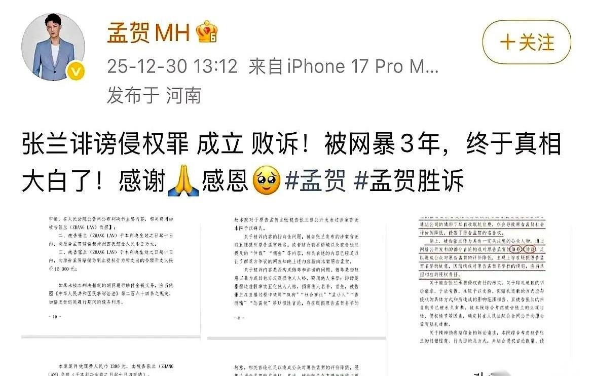 有些人的跨年是敲钟,有些人的跨年,是收到了“最后通牒”。 孟贺这一招,真的,太狠了。 就掐着这个点,所有人都准备翻篇儿、许愿、说“明年会更好”的时候,他“啪”一下,把一张王牌直接甩到了桌上。 我根本不懂他们之间那些复杂的官司,咱普通人也看不明白。 但那张图往那一放,那种感觉…… 就像你辛辛苦苦考了全年试,就等着放假了,结果老师在最后一分钟把你叫到办公室,说“你的成绩,我们得重新聊聊”。 窒息不? 这哪儿是打官司啊,这分明是诛心。 就是要告诉你,别想好好过年。我们的事儿,没完。你每一次举杯,每一次看烟花,心里都得给我惦记着这块石头。 成年人的世界,真的没有一键清空。 旧账,总会在你最意想不到、也最不想它出现的时候,跳出来,给你响亮的一巴掌。 兰姐这壶,估计得从年头喝到年尾了。